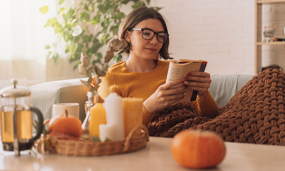 Grāmata ir labākais sabiedrotais rudens vakaros. Lasīšana attīsta iztēli, uzlabo atmiņu un ļauj atrauties no viedtālruņa un televizora ekrāniem. Ja grūti tam atrast laiku, izmēģiniet mazo solīšu metodi un lasiet regulāri, bet īslaicīgi, piemēram, 20 lappuses dienā. Ar šīs metodes palīdzību mēneša laikā izlasīsiet pat vairākas grāmatas. Labs lasīšanas izaicinājums ir atcerēties 5 bērnības grāmatas vai izlasīt dažādu pasaules tautu literatūru. Iespējams izmantot arī audiogrāmatas, kas ir lielisks risinājums pastaigu vai mājas uzkopšanas darbu laikā. Iekārtojiet mājīgu lasīšanas stūrīti. Ērts krēsls, mīksta sega un lampa ar siltu gaismu lasīšanu padarīs par vienu no iemīļotākajām nodarbēm.