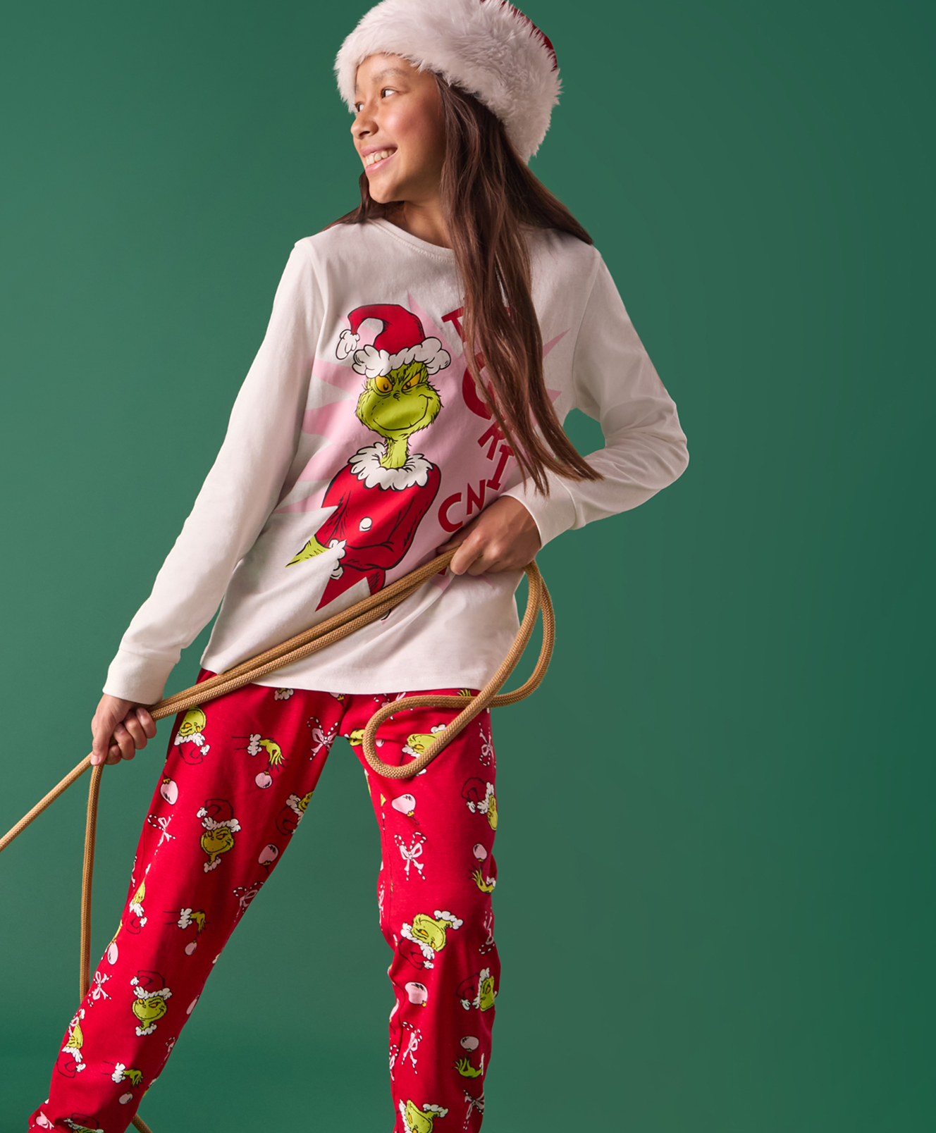 GRINČS un viņa svētku humoristiskā kolekcija ir šeit! Atklāj apģērbus, pidžamas, apakšveļu, čības un daudzveidīgus aksesuārus ar zaļo svētku anti-varoni! Piepildi savus Ziemassvētku gatavošanās darbus ar smaidiem, izvēloties kaut ko ar savu mīļāko filmu varoni.