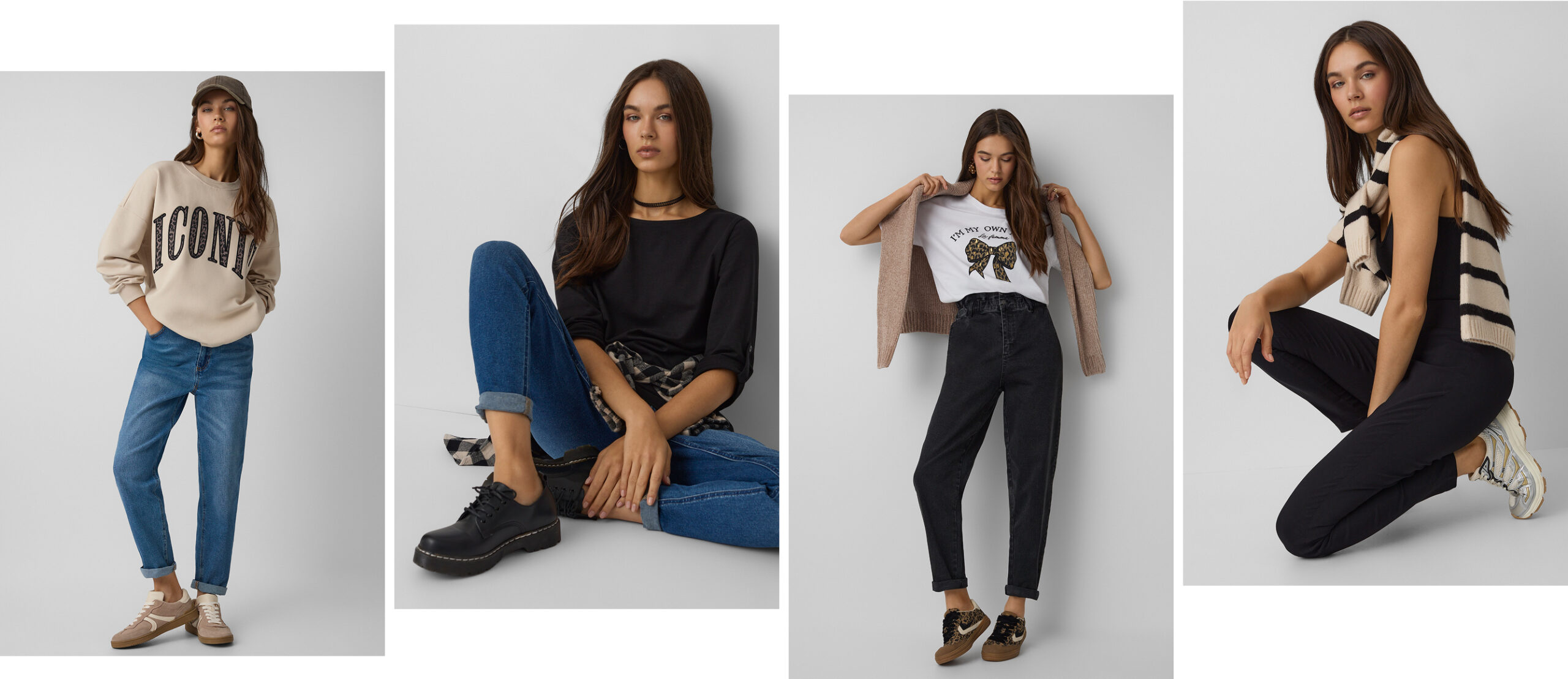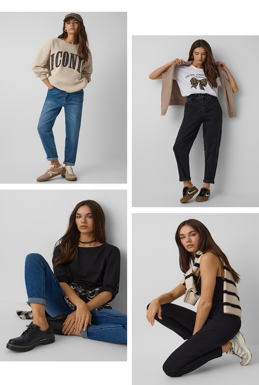 Džinsi ir ērta stila pamats. Tos var valkāt kopā ar kreklu, kuram ir garas vai īsas piedurknes, džemperi vai sporta kreklu. Iedvesmojies no mūsu jaunajā kolekcijā piedāvātajām kombinācijām un radi savus stilus, kas tev vislabāk piestāv. Vienkrāsaini? Kontrastīgi? Vai varbūt ar drosmīgu dzīvnieku apdruku? Izlem un apmeklē Pepco, lai iepirktos!