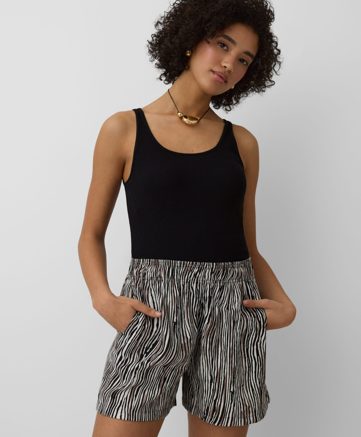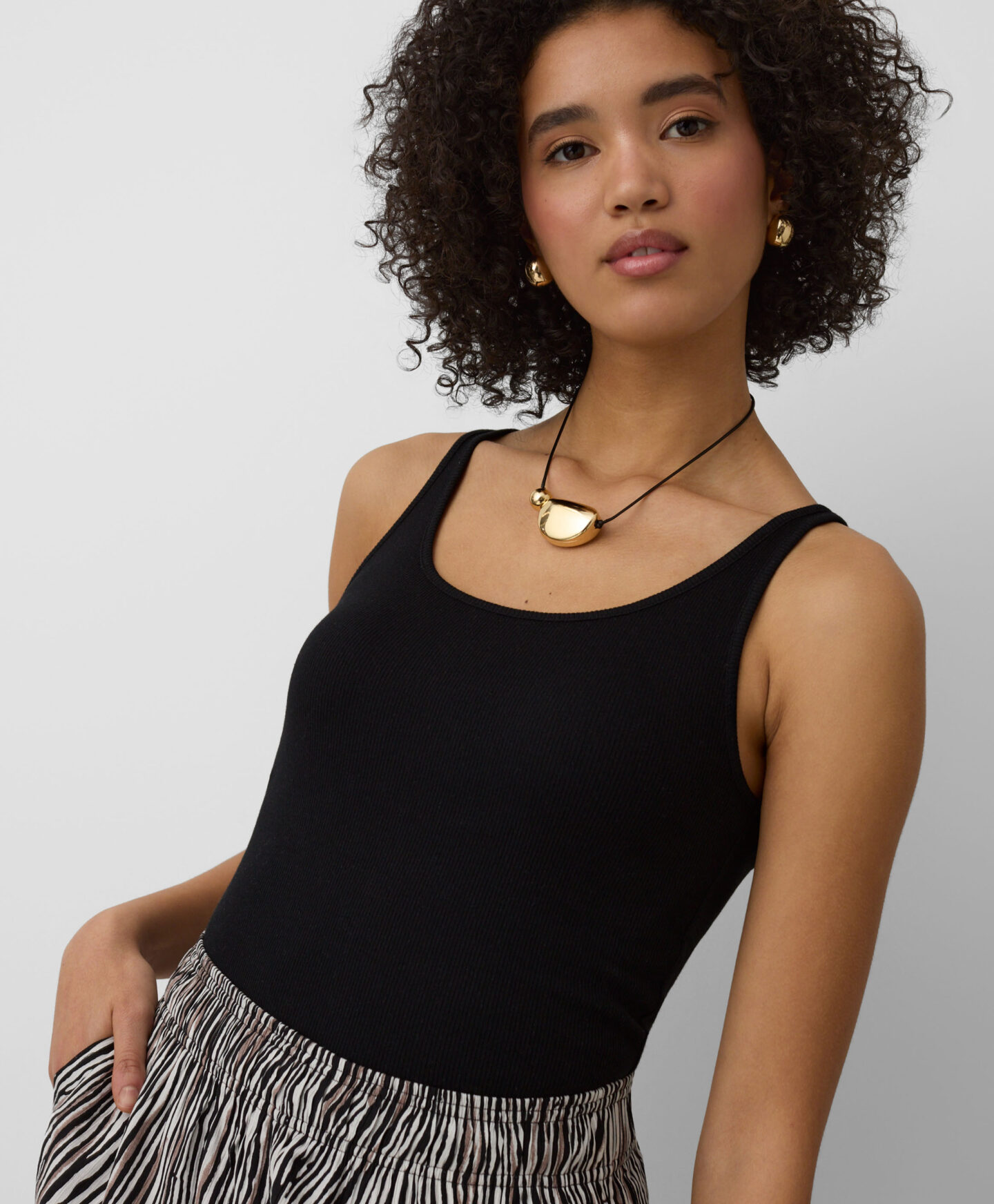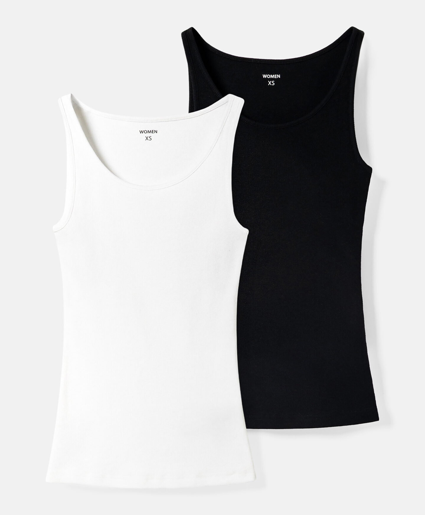 2-pak topów damskich w prążki doskonale uzupełni Twoją garderobę. Połączenie dwóch ponadczasowych kolorów – czerni i bieli – sprawia, że tego zestawu nie może zabraknąć w Twojej szafie. Elastyczny materiał w prążki pięknie układa się na sylwetce, pozwalając skórze oddychać. Każdy top dobrze wygląda połączony z ulubionymi jeansami, szortami czy bardziej eleganckimi chinosami.