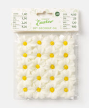 Baltie, dekoratīvie ziedi ir ideāli piemēroti ziedu motīvu cienītājiem. To spilgtā krāsa un izturīgie materiāli padara ziedus ideāli piemērotus dažādiem rokdarbu projektiem. Dekoru precīzās detaļas atgādinās par pavasari jebkurā gadalaikā!