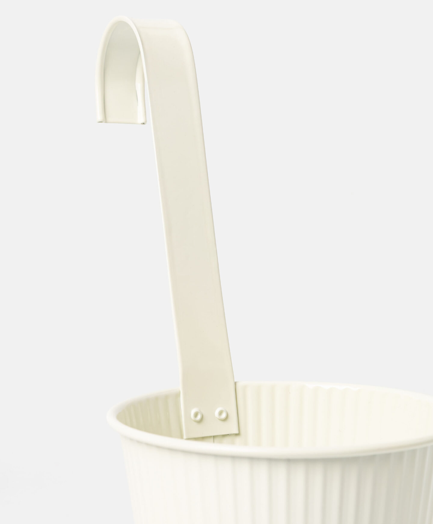 Baltais, piekarināmais puķu pods ar rievotām sieniņām piesaista uzmanību ar pavasarīgo dizainu. Praktiskais, piekaramais āķis ļauj to novietot uz balkona margām, zem griestiem vai pie koka sienas, maksimāli izmantojot pieejamo telpu. Metāla konstrukcija ir stingra, noturīga pret koroziju, sauli un laikapstākļiem, garantējot ilgstošu lietošanu. Piedāvājumā pieejami dažādi modeļi.