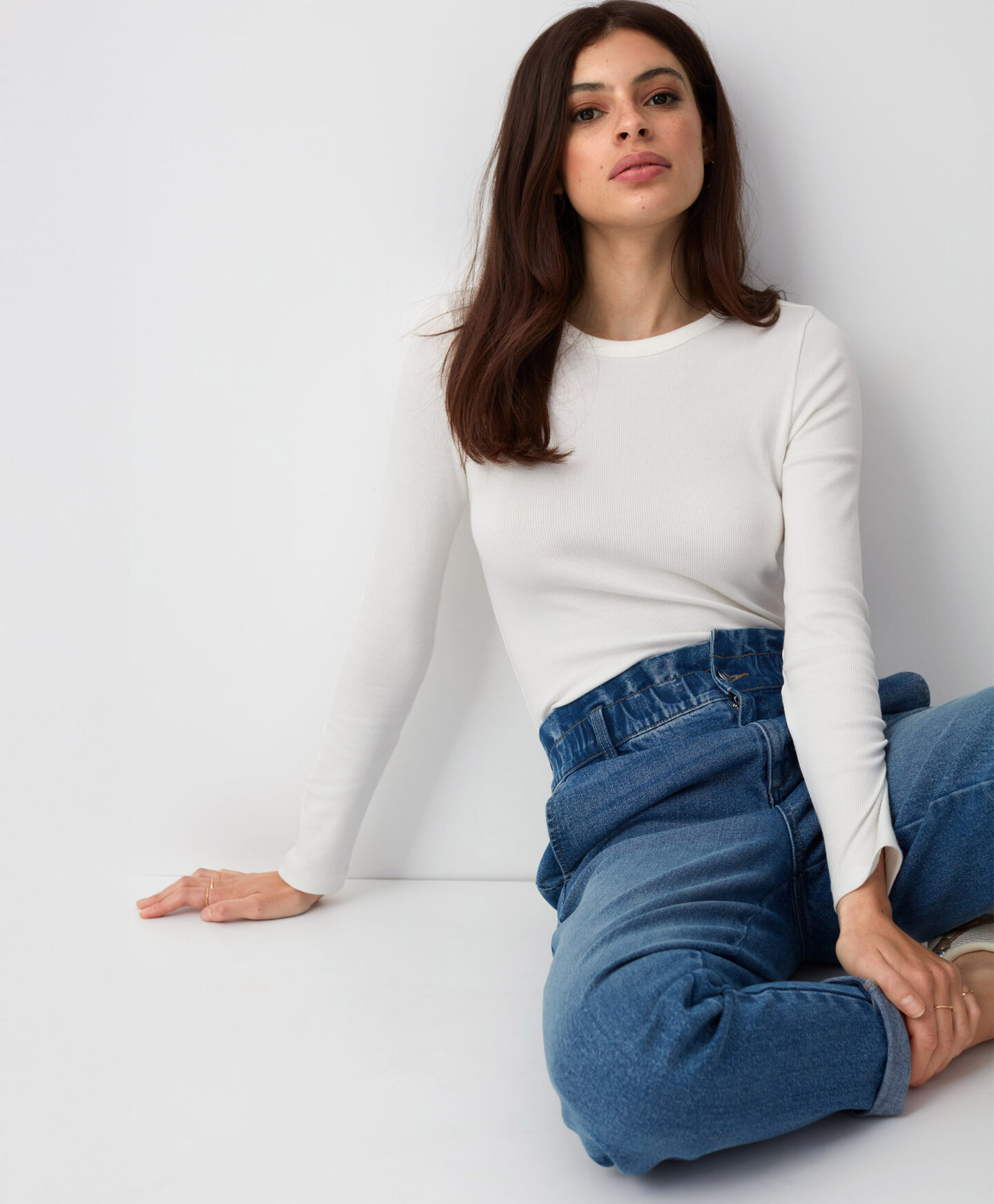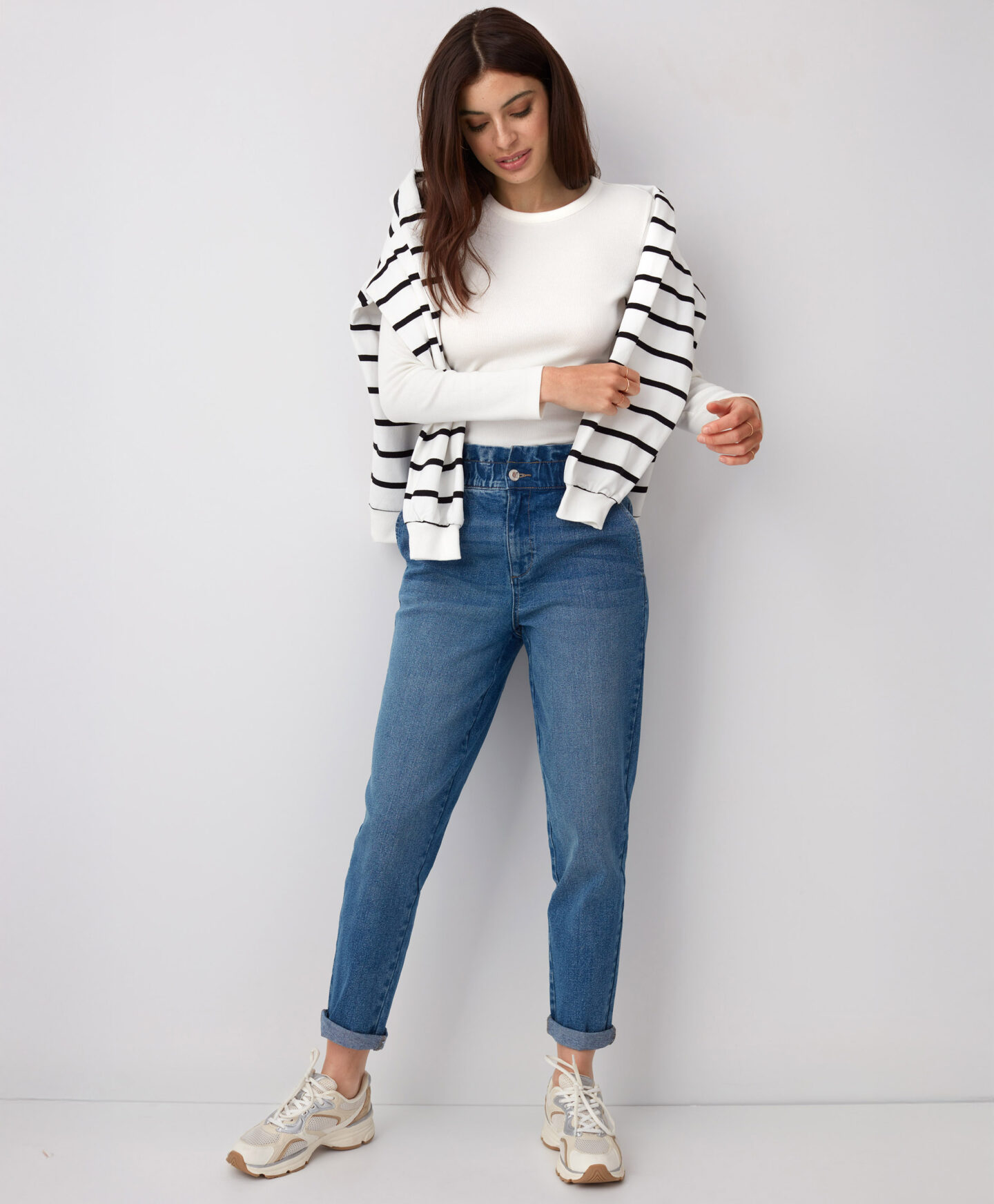 Balts, svītrains krekls nodrošina lielisku piegulumu un augstu valkāšanas komfortu. Tas ir universāls garderobes elements, kas labi noderēs gan ikdienā, gan elegantākos pasākumos.
