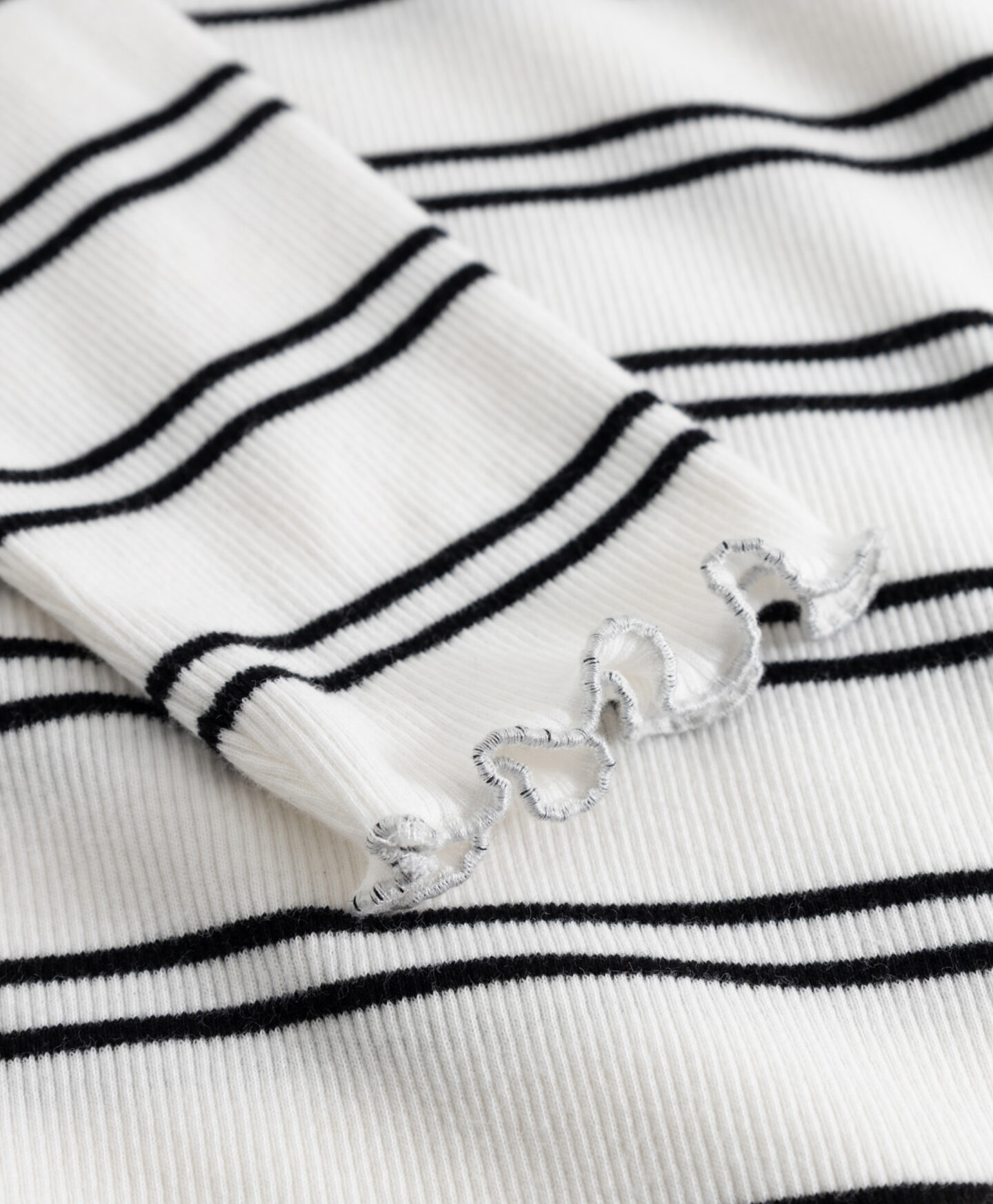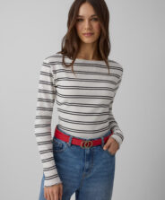 Svītrains, balts krekls ar augstu kokvilnas saturu un nelielu elastāna piedevu ideāli pieguļ augumam. Dekoratīvā apdare piešķir stilīgu akcentu jebkuram tērpam. Krekls labi izskatās kombinācijā ar džinsiem un elegantām biksēm. Pieejams divās krāsās.