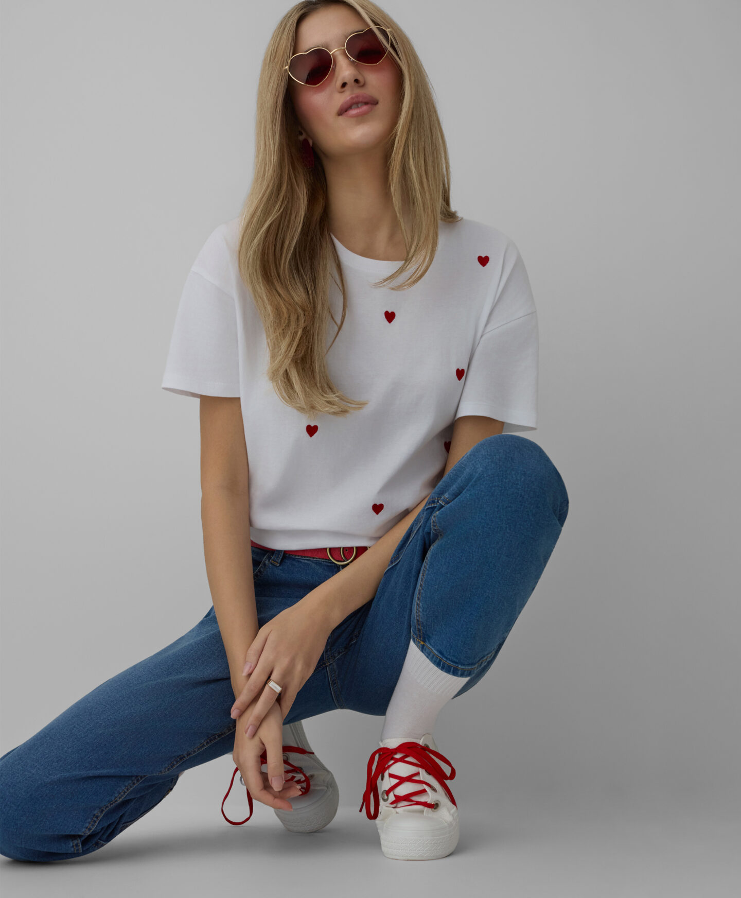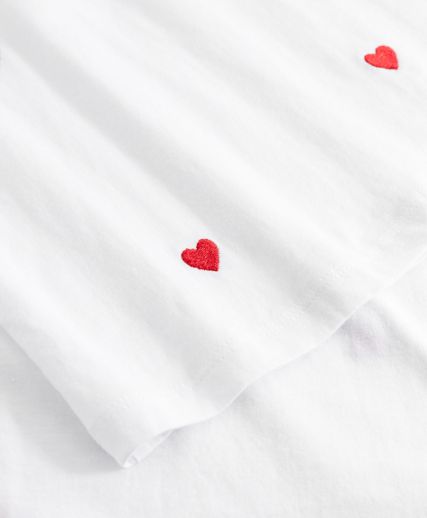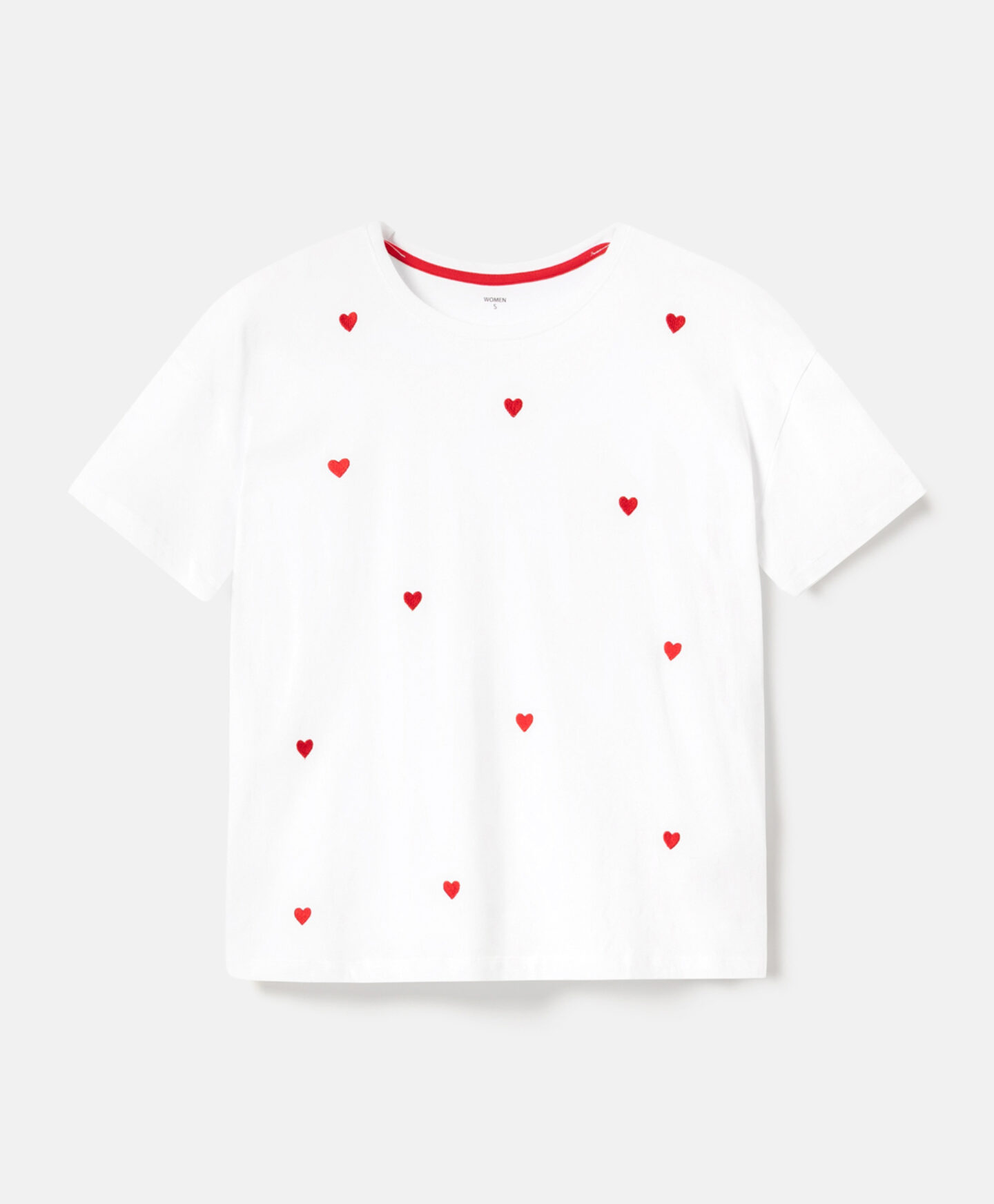 Balts T-krekls, kas izgatavots no 100% kokvilnas, ar sirdīm ir apģērbs, kas radīts komforta mīļotājiem. Klasiskais piegriezums, mīkstais materiāls un burvīgais raksts veido perfektu kombināciju ikdienas valkāšanai. Pieejams divās krāsās.