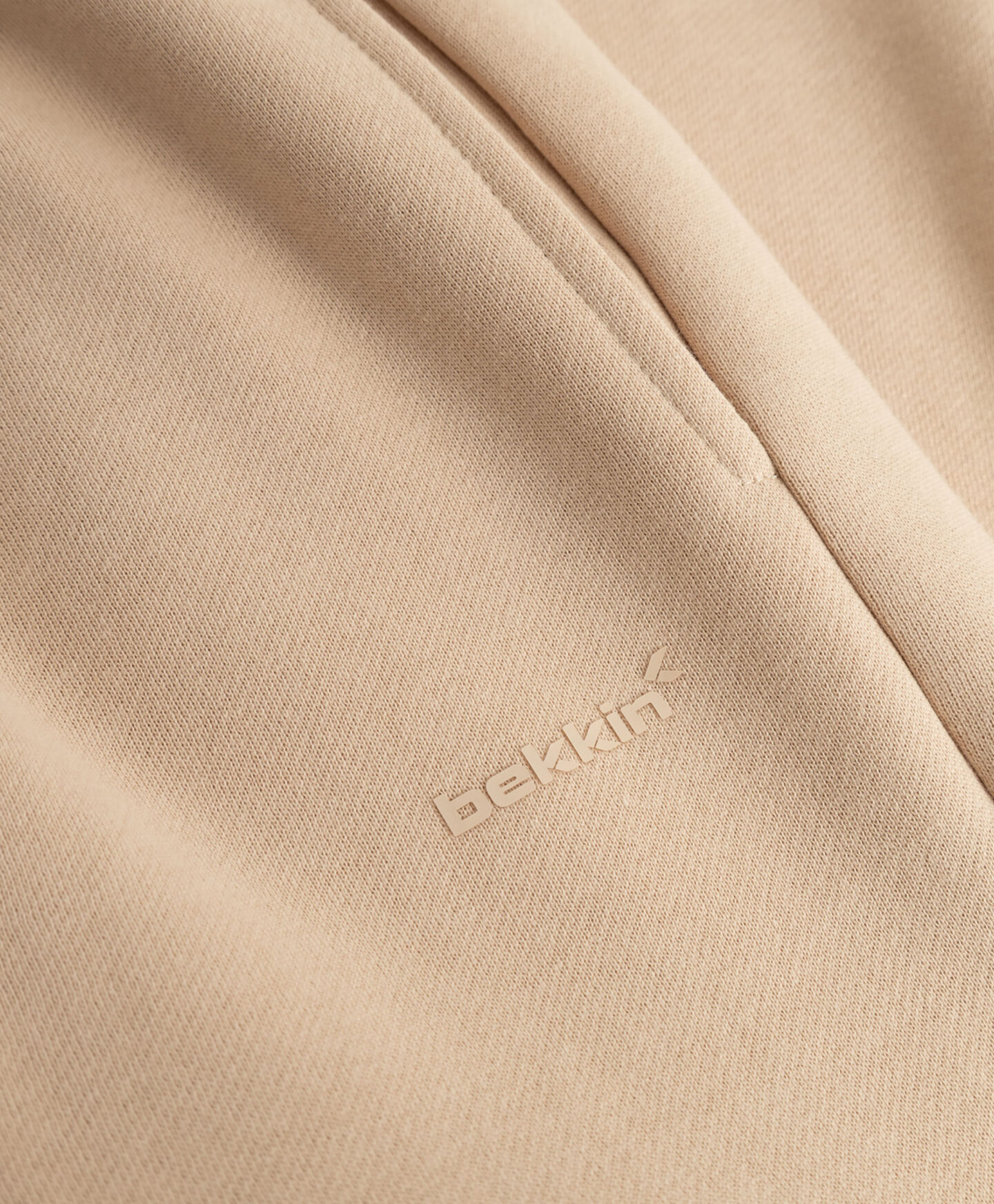 BEKKIN bērnu sporta bikses neitrālā krāsā iekaros ikviena komforta mīļotāja sirdi. Kokvilnas piejaukums nodrošina siltumu un komfortu, ir patīkams pieskārienam un skaisti pieguļ augumam. Elastīgā jostasvieta nodrošina perfektu piegulumu jebkuram augumam. Piedāvājumā ir pieejams arī pieskaņots džemperis.