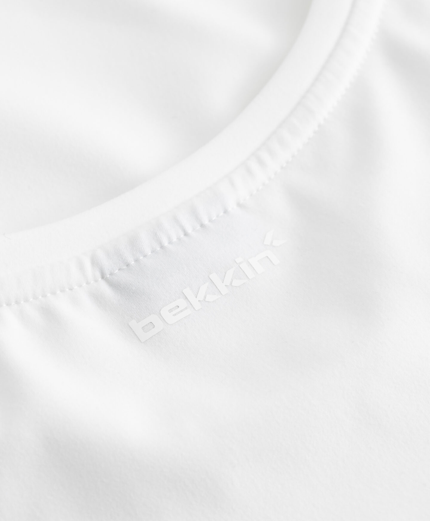 BEKKIN bērnu T-krekls ir brīvības iemiesojums. Brīvais piegriezums nodrošina kustību brīvību un pilnīgu komfortu. Platās piedurknes piešķir T-kreklam modernu izskatu, bet ērtais kakla izgriezums atvieglo tā uzvilkšanu un novilkšanu. Universālā krāsa lieliski sader ar dažādiem apģērbiem — gan ikdienišķiem, gan elegantiem.
