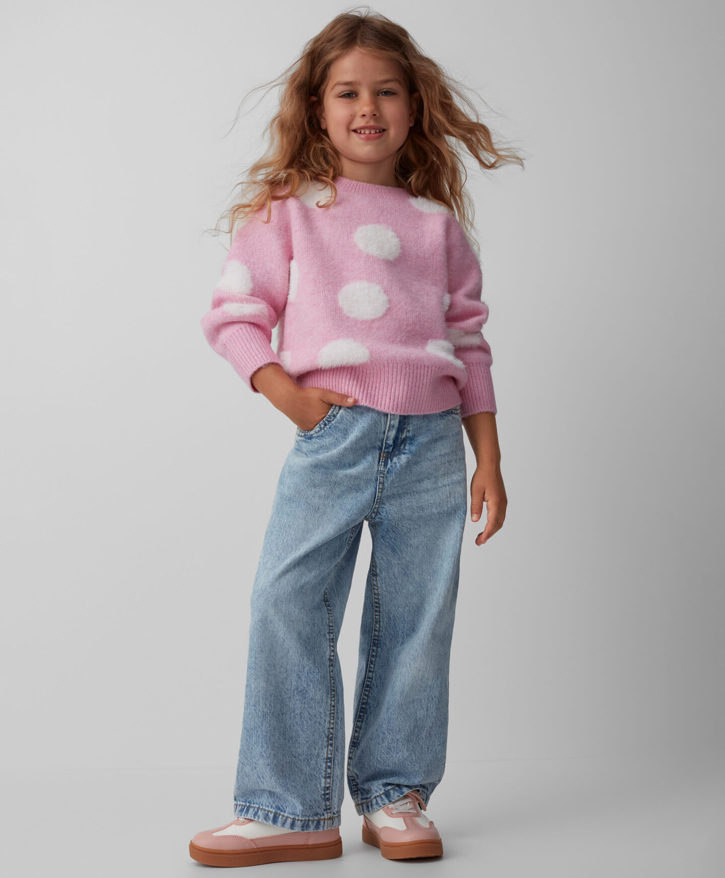 Bērnu džemperis ar punktiņu rakstu ir ideāli piemērots mazajiem rozā krāsas mīļotājiem! Tas ir silts, mīksts un patīkams pieskārienam, tāpēc ir kā radīts vēsām dienām. Kombinējot ar džinsiem, legingiem vai svārkiem, tas piešķir elegantu pieskārienu bērnudārza un skolas gaiteņu stilam. Pieejami džemperi ar dažādiem rakstiem.