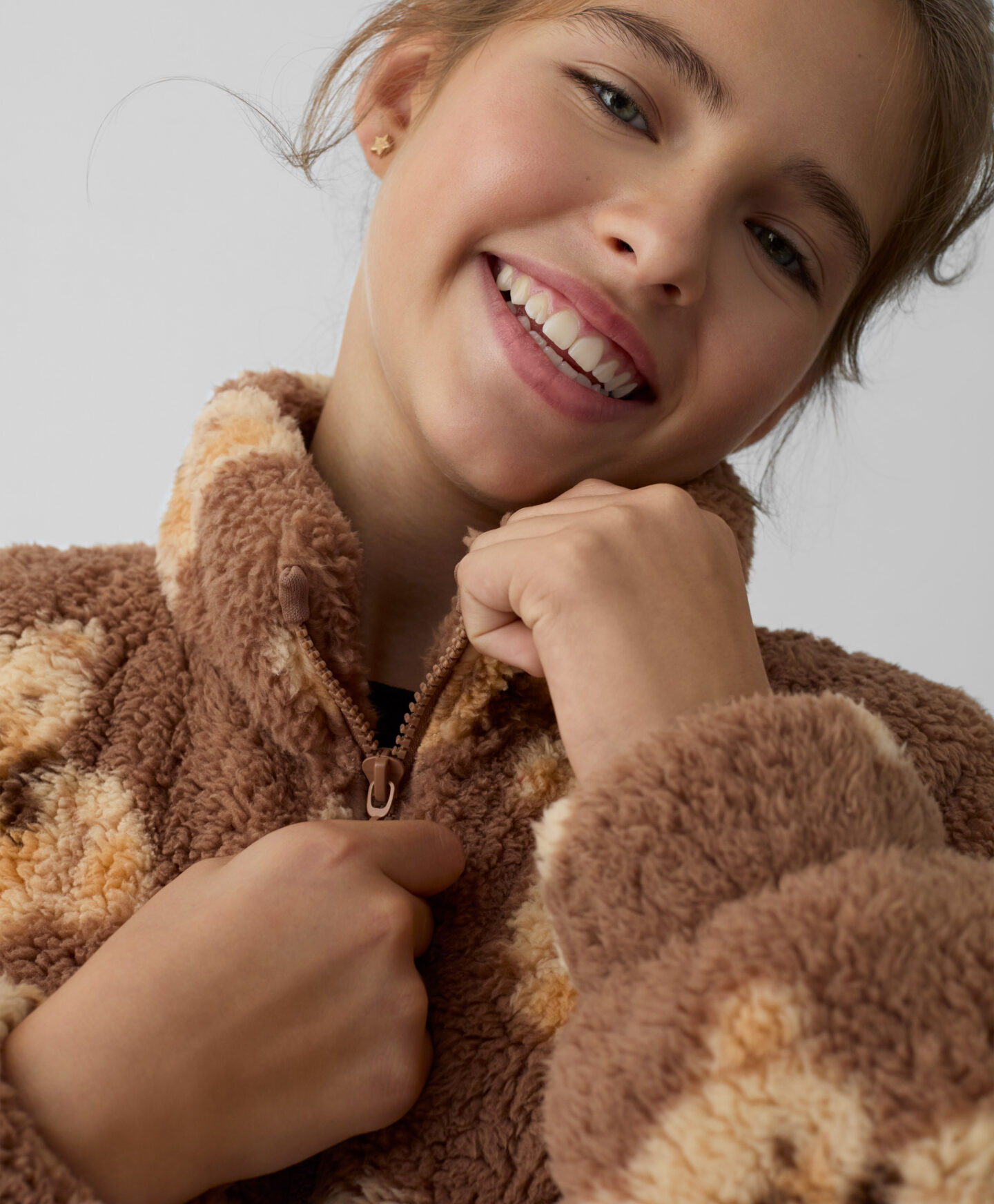 Bērnu flīsa džemperi ar lāčiem var aizvērt ar ērtu rāvējslēdzēju. Tas apvieno labu stilu, siltumu un komfortu. Izgatavots no mīksta materiāla, tas maigi ieskauj bērna ādu. Rāvējslēdzējs pilnā garumā nodrošina ātru uzvilkšanu un novilkšanu, bet brīvais piegriezums ļauj ērti kustēties, nodrošinot bērnam maksimālu brīvību.