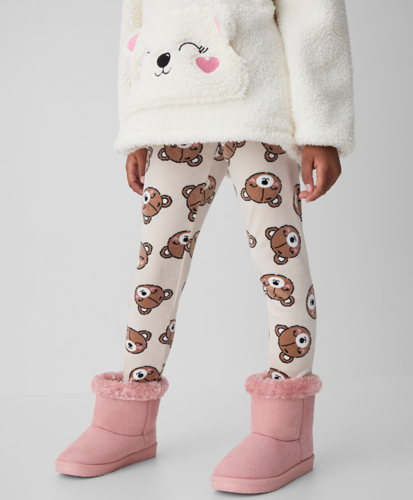 Bērnu velūra legingi ar piemīlīgu lācēnu rakstu patiks katram mazajam. Tie ir silti un mīksti, patīkami pieskārienam, bet elastīgais materiāls nodrošina valkāšanas komfortu. Legingi ir piemēroti gan valkāšanai mājās, gan pastaigām ārā vai bērnudārza apmeklēšanai. Tie lieliski izskatās kombinācijā ar džemperi, jaku vai kreklu ar garām piedurknēm.
