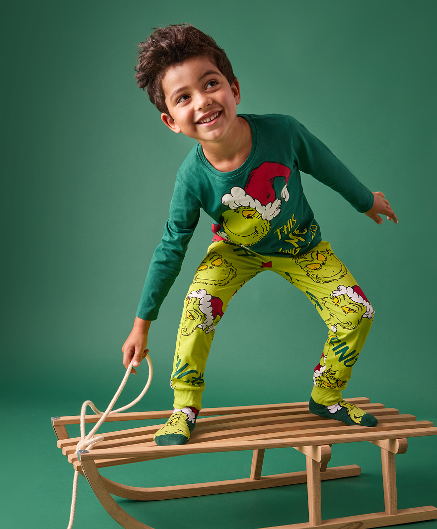 Bērnu GRINČA pidžama, kas izgatavota no 100% kokvilnas, ir ideāla izvēle svētku vakariem. Komplektā ietilpst krekls ar garām piedurknēm un bikses ar Ziemassvētku rakstu, kas nodrošina komfortu un siltumu. GRINČA motīvs piešķir šarmu katram mirklim un rada bērnam labu noskaņojumu. Dabiskais materiāls ir maigs ādai un izturīgs lietošanā.