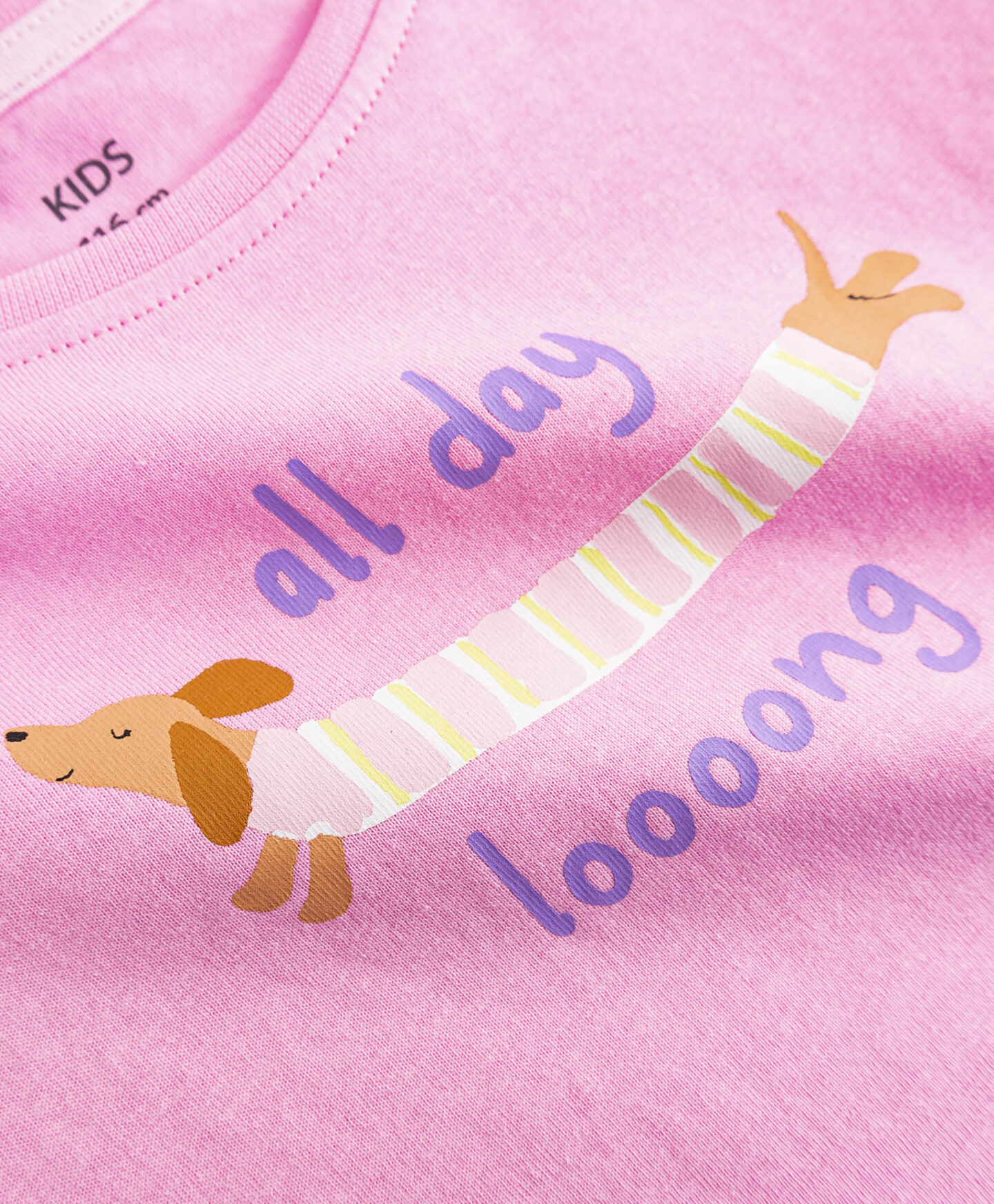 Šis bērnu T-krekls no 100% kokvilnas ir ideāls pamats dažādiem apģērbu komplektiem. Materiāls ir elpojošs, maigs uz ādas un piemērots jutīgai ādai. Pūderrozā krāsa un smalkais uzraksts ir labas gaumes simbols!