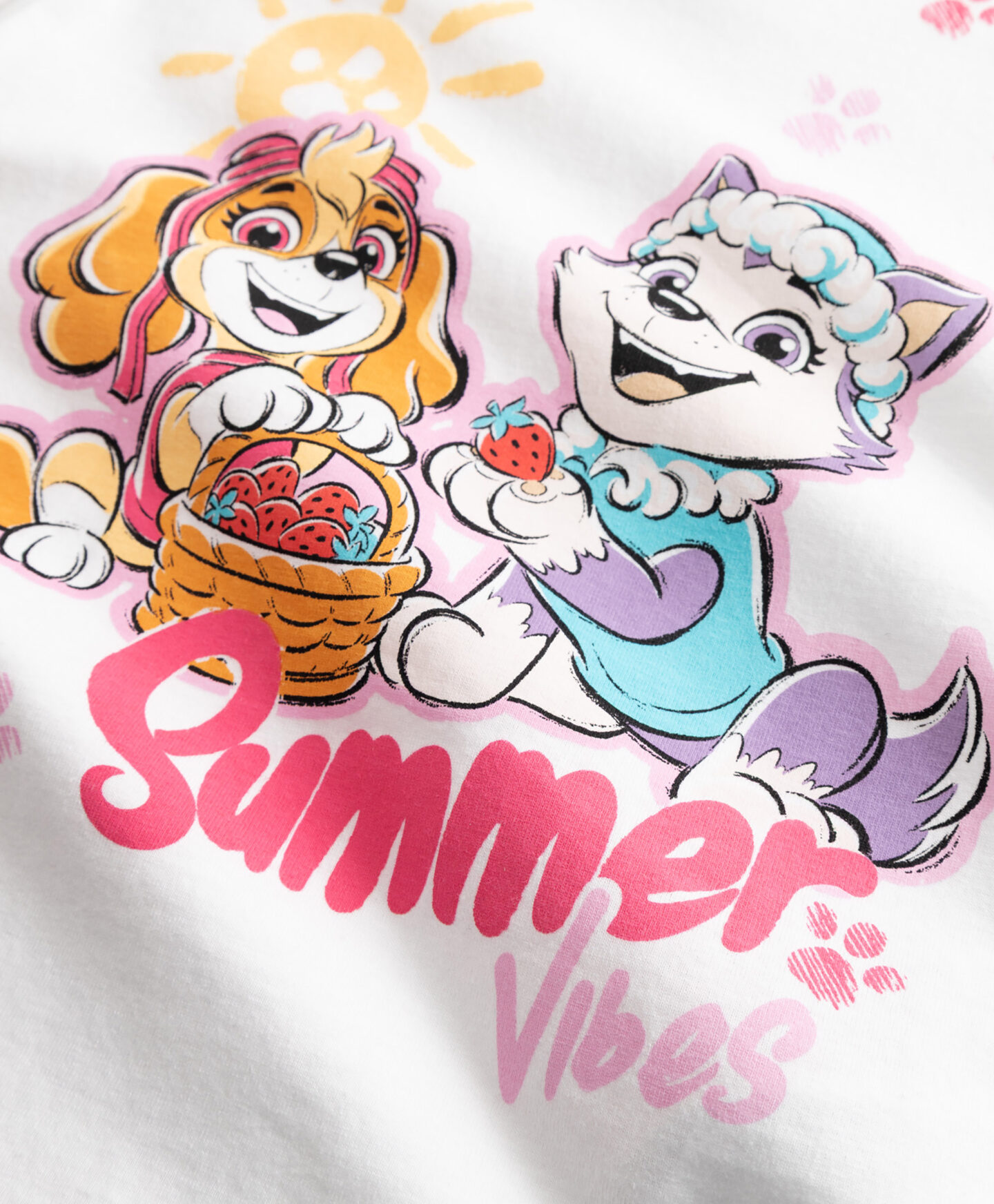Bērnu T-krekls ĶEPU PATRUĻA ir izgatavots no 100% kokvilnas, tam ir īsās piedurknes, kā arī jauka grafika priekšpusē. Mīkstais materiāls ir neticami patīkams ādai un ļauj tai elpot. T-krekls lieliski noder siltās dienās, nodrošinot bērnam maksimālu valkāšanas komfortu. Tops lieliski izskatīsies kopā ar džinsiem, legingiem vai svārkiem.
