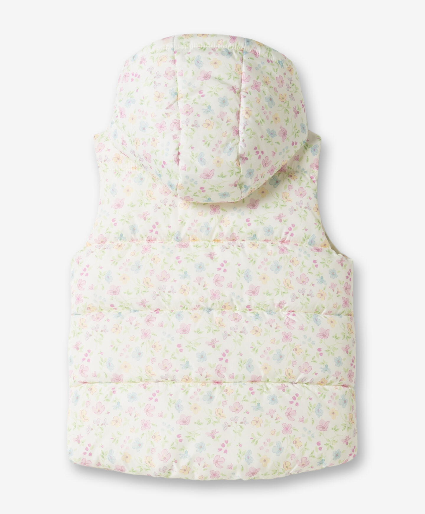 Bērnu puķainā veste piešķirs krāsas jebkuram apģērbam. Tā ir silta, viegla un ērta valkāšanai. Rāvējslēdzējs, ietilpīgās kabatas un dziļā kapuce padarīs to par iecienītāko apģērbu bērna garderobē.