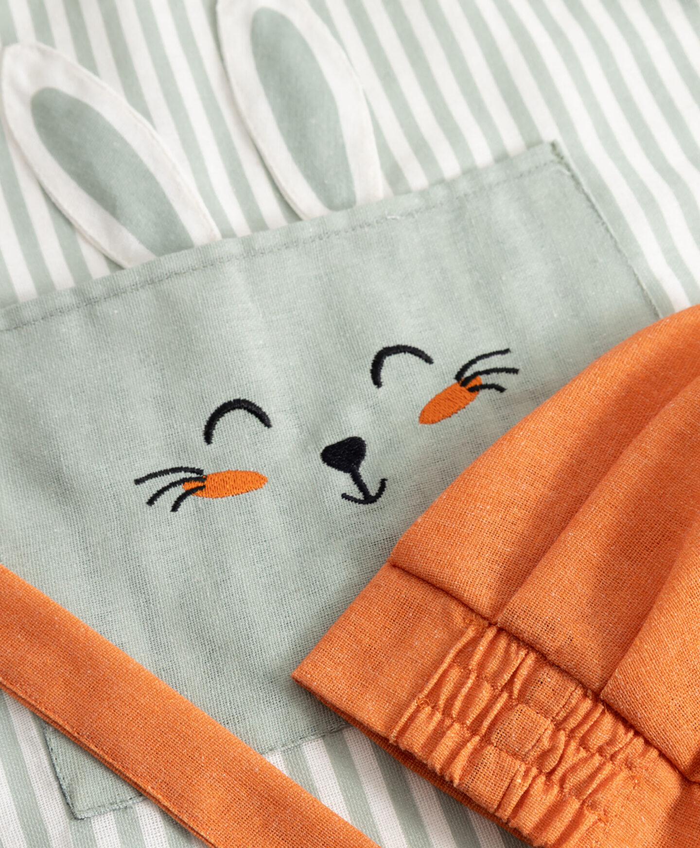 Bērnu virtuves priekšauts ar zaķa dizainu garantē smaidu, kopīgi gatavojot iecienītākos ēdienus. Pavasarīgais zaķa raksts mudina bērnus piedalīties virtuves darbos, bet “velcro” aizdare un josta nodrošina perfektu piegulumu. Priekšauts ir ērts, viegls un izturīgs pret daudzkārtēju mazgāšanu. Komplektā iekļautā cepurīte papildina mazā pavāra tērpu.