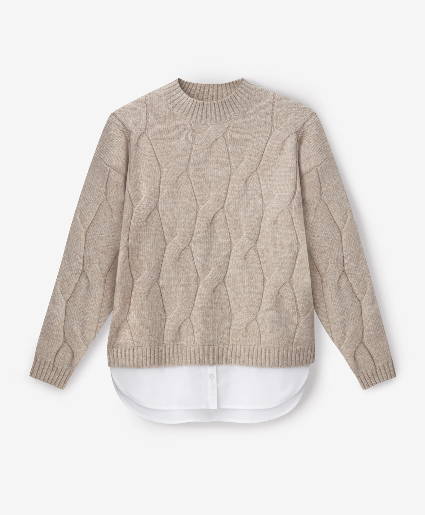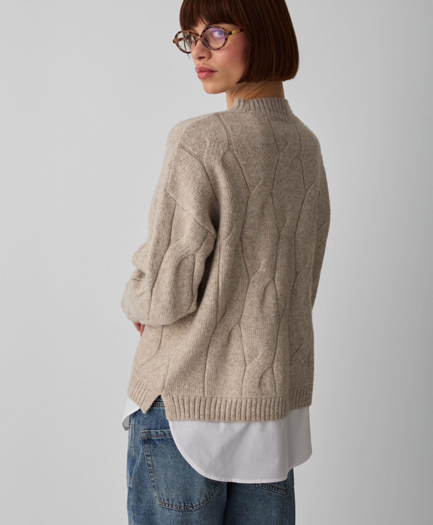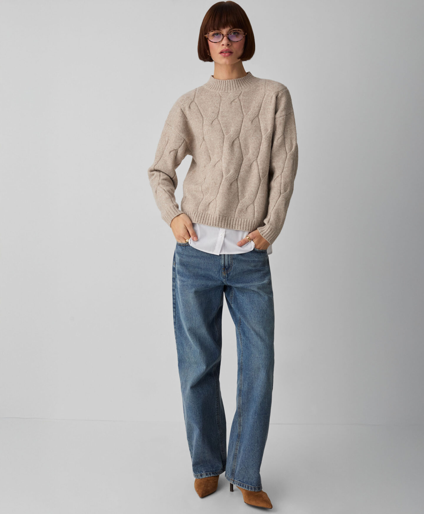 Bēšs džemperis ar kreklu ir domāts ikvienam, kas seko modes tendencēm. Šāds adījums ir rudens noskaņas pamatā, turklāt kombinācijā ar balto kreklu, tas kļūst par lielisku izvēli dažādiem gadījumiem. To var vilkt uz biroju, tikšanās reizēs ar draugiem vai uz rudenīgu randiņu. Pieejams divās krāsās, no kā izvēlēties.