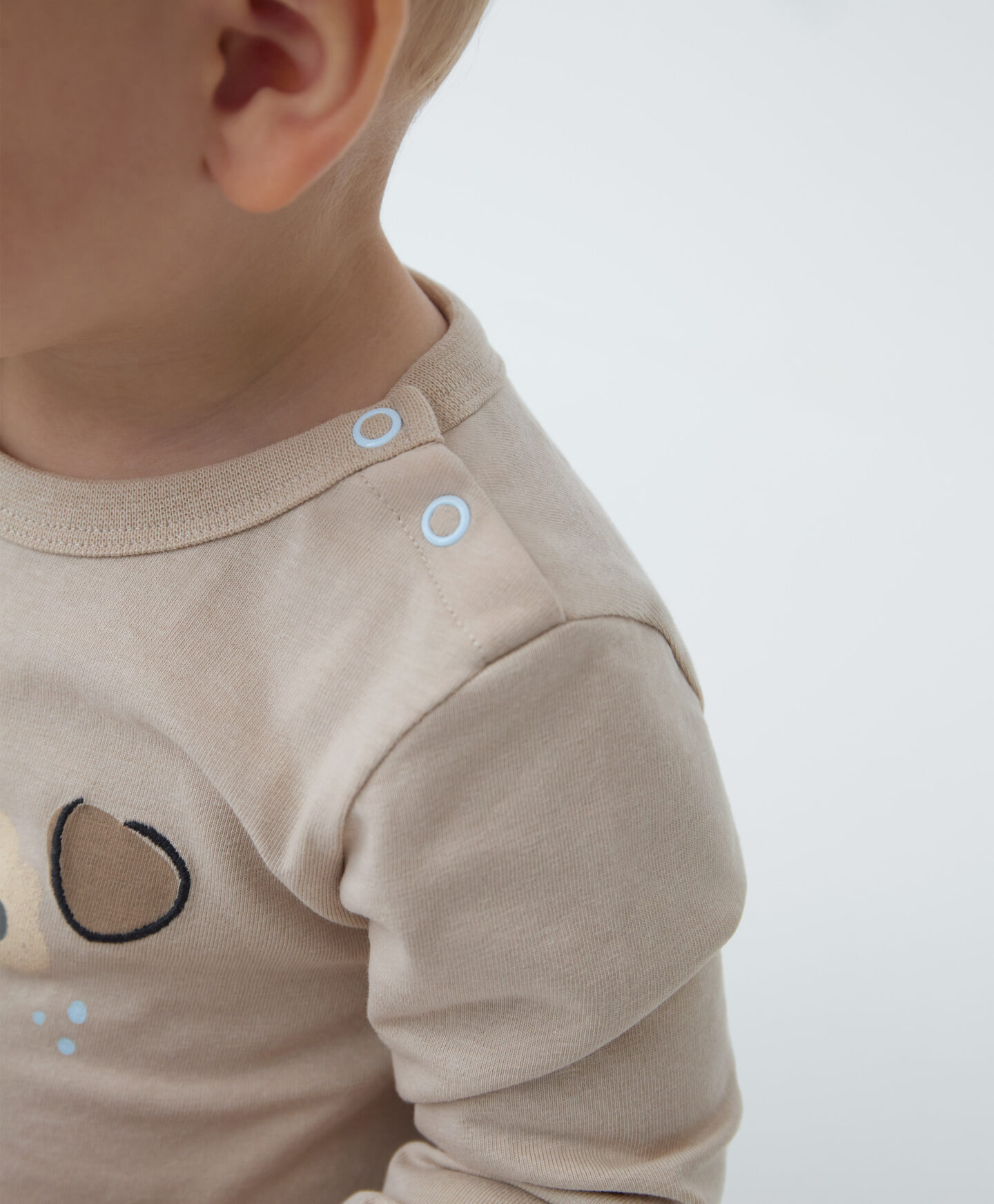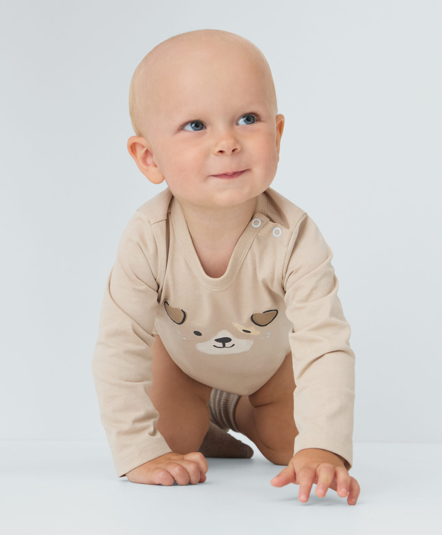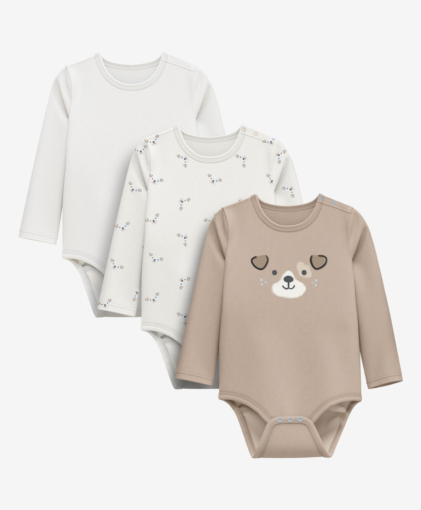 Bodiji, 3 gab., izgatavoti no 100% kokvilnas ar suņu apdruku, ir radīti šo četrkājaino draugu mazajiem faniem. Bodiji ir izgatavoti no dabīgām šķiedrām, padarot tos elpojošus, gaisīgus un ērtus valkāšanai. Praktiskais spiedpogas aizdare atvieglos ātru autiņbiksīšu maiņu un apģērbšanu. Suņu raksts piešķir šarmu un jautru raksturu. Pieejami arī citi raksti.