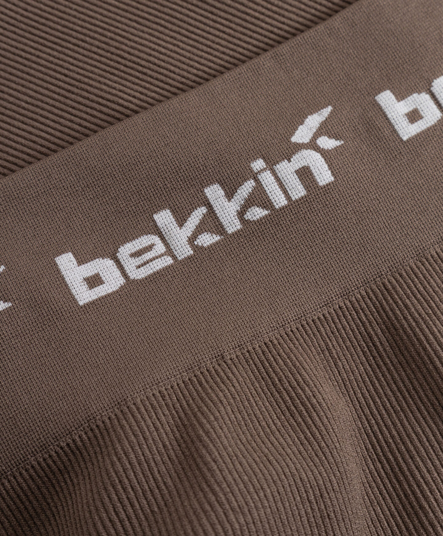 BEKKIN brūnie legingi ir ar ērtu jostasvietu, kas garantē perfektu piegulumu aktivitāšu laikā. Izgatavoti no elastīga materiāla, tie nodrošina pilnīgu kustību brīvību un komfortu valkāšanas laikā. Bezvīļu šuvums samazina berzes risku, bet klasiskā krāsa padara tos viegli kombinējamus ar jebkuru apģērbu – gan sportisku, gan ikdienas.