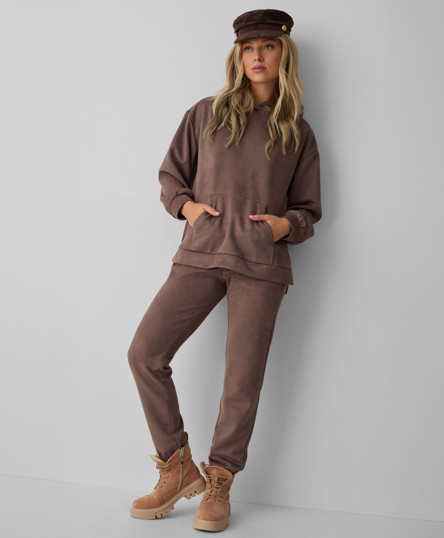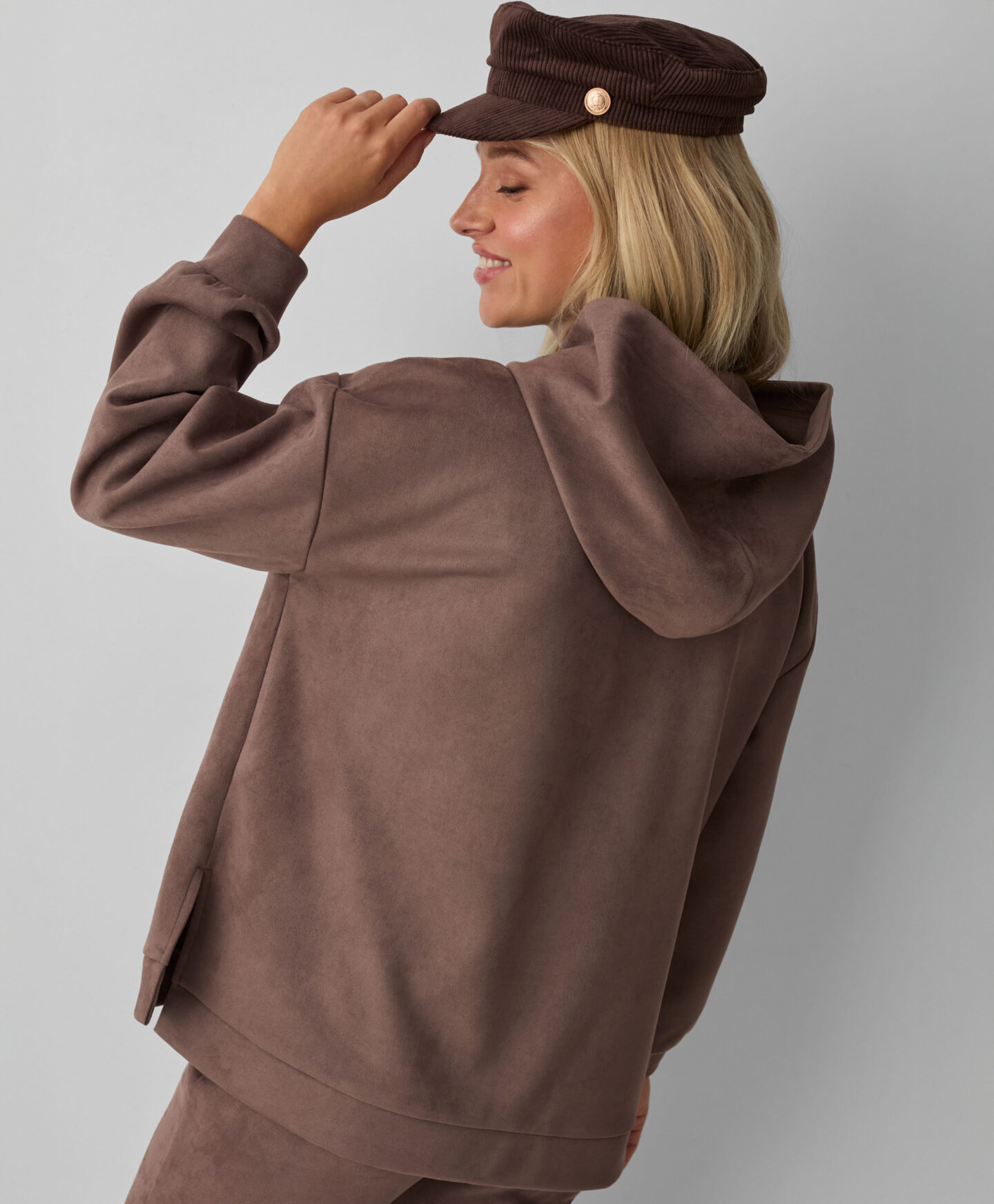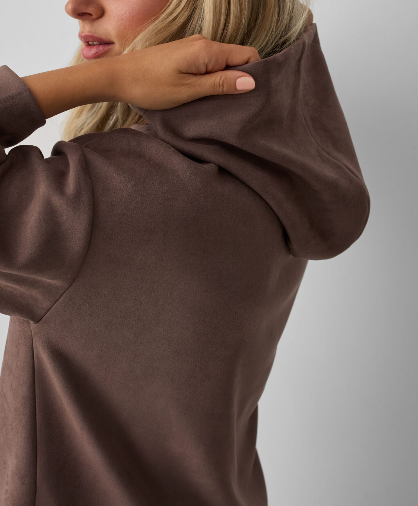 Brūns zamšādas džemperis ar kapuci nodrošinās komfortu un siltumu aukstās dienās. Tas ir ne tikai ērts, bet arī stilīgs. Mīkstais materiāls, pārdomātais dizains un elegantā krāsu gamma padarīs to par iecienītāko džemperi šajā rudenī! Tas perfekti sader ar kolekcijas zamšādas biksēm. Veikalā atradīsi divus šī džempera krāsu variantus.