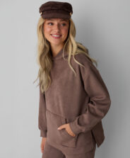 Brūns zamšādas džemperis ar kapuci nodrošinās komfortu un siltumu aukstās dienās. Tas ir ne tikai ērts, bet arī stilīgs. Mīkstais materiāls, pārdomātais dizains un elegantā krāsu gamma padarīs to par iecienītāko džemperi šajā rudenī! Tas perfekti sader ar kolekcijas zamšādas biksēm. Veikalā atradīsi divus šī džempera krāsu variantus.