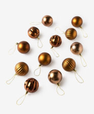 Brūnu plastmasas rotājumu komplekts piešķir dekorācijām mājīgumu. Rotājumu izturība pret sadauzīšanos padara šo komplektu ideāli piemērotu mājām, kurās dzīvo aktīvi iemītnieki.