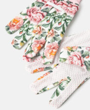 Dārza cimdi ar ziediem ir neaizstājams aksesuārs, kas nepieciešams ikvienam, kas strādā dārzā, vienlaikus rūpējoties par maigo roku ādu. Cimdi nodrošina lielisku piegulumu, komfortu un kustību brīvību darba laikā. Izgatavoti no izturīgiem materiāliem, tie pasargā no ērkšķiem un netīrumiem, bet teksturētā virsma nodrošina stingru saķeri ar dārza darbarīkiem. Cimdi ir viegli kopjami. Piedāvājumā pieejami dažādi modeļi.
