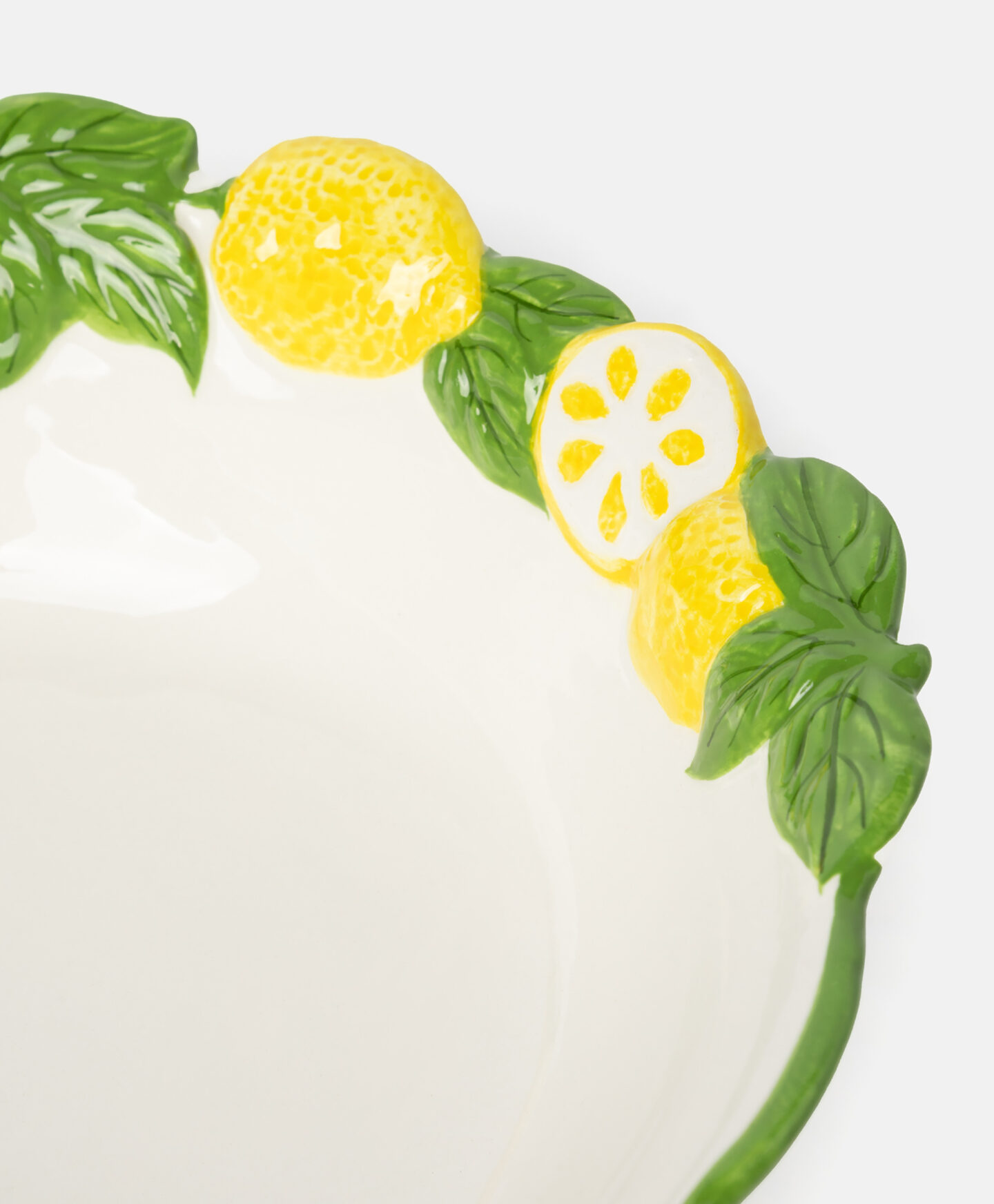 Šī dolomīta servēšanas bļoda ar izvirzījumu malā un citrona rakstu radīs patiesi vasarīgu galda noformējumu. Bļodas 23 cm diametrs ir ideāli piemērots salātu pasniegšanai vai augļu izlikšanai uz virtuves galda. Dolomīts ir noturīgs pret skrāpējumiem un karstumu, tādēļ nodrošina ilgstošu lietošanu, nemazinot bļodas skaisto izskatu.