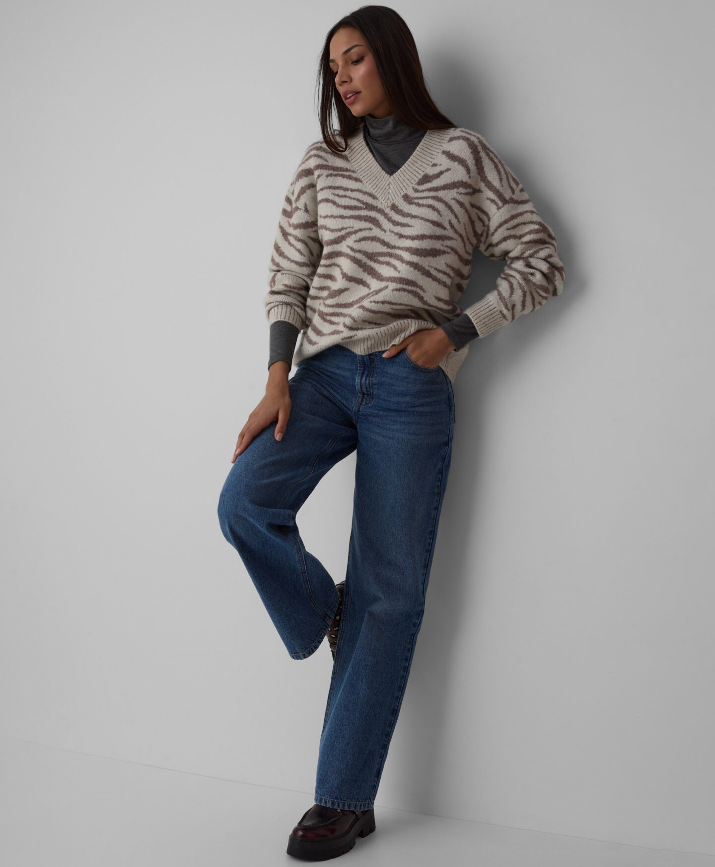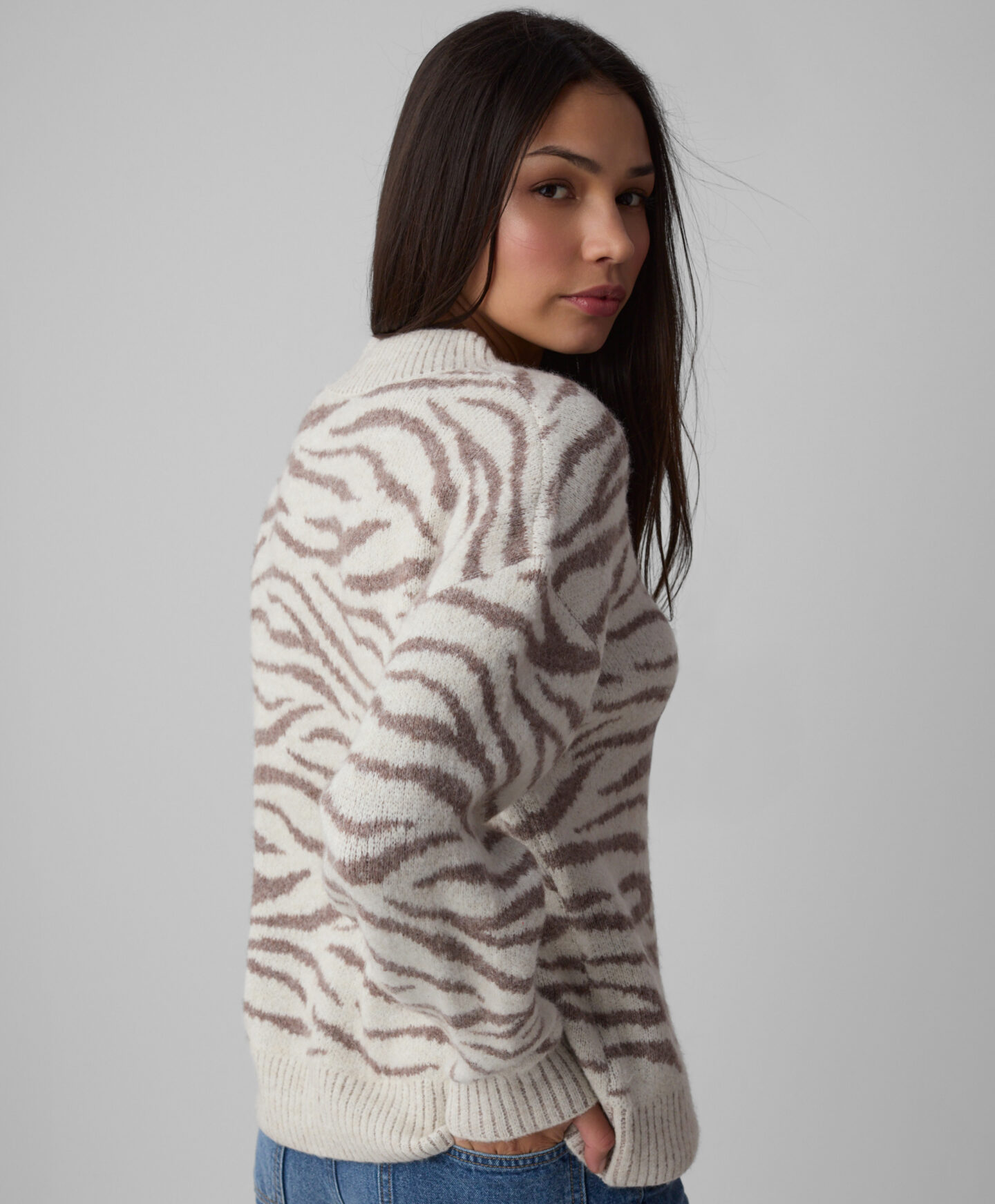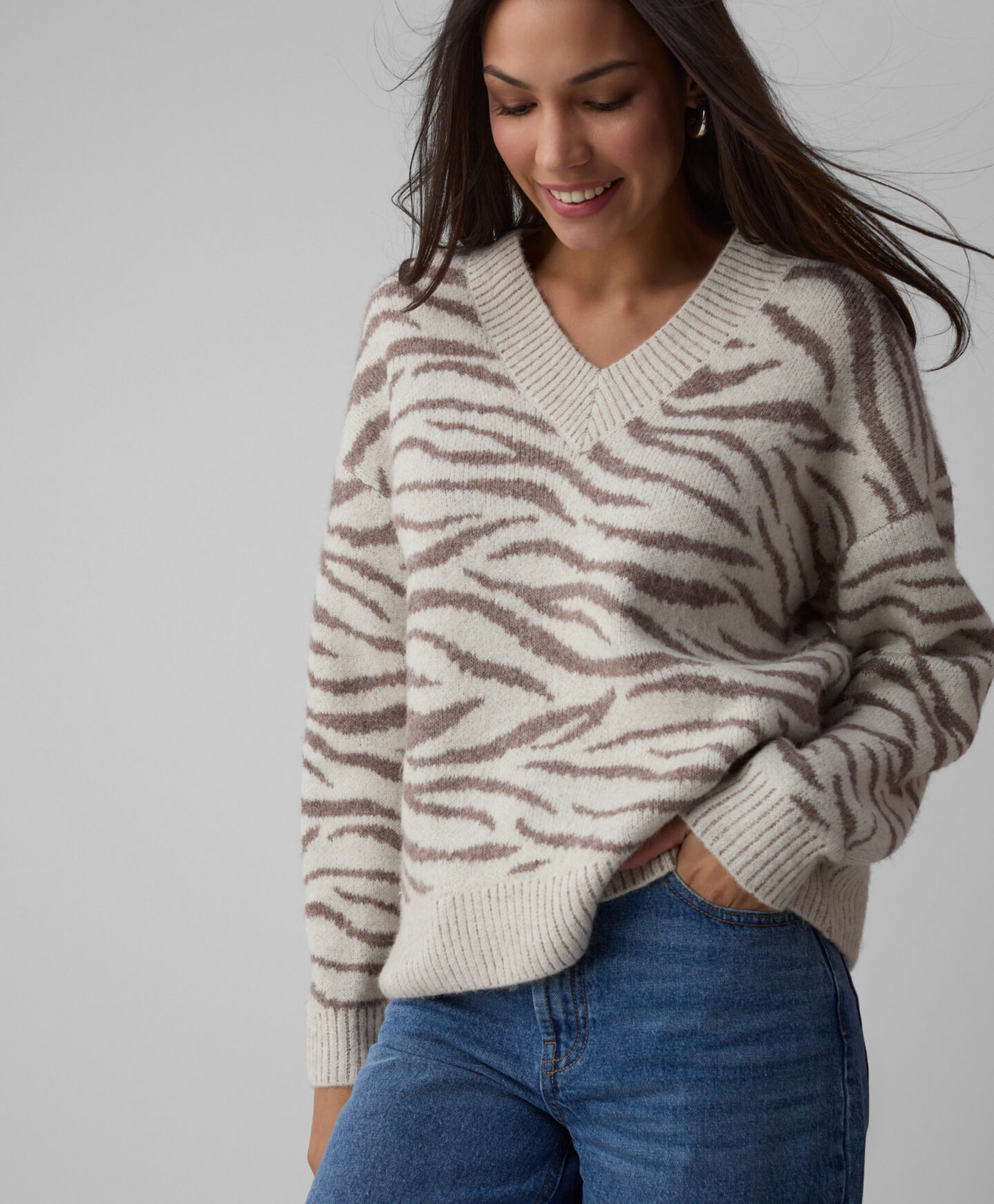Džemperis ar zebras motīvu ir ideāla izvēle ikvienam, kas vēlas izcelties pūlī. Tas ir mīksts, silts un ideāli piemērots aukstākām ziemas dienām. Tas lieliski izskatās gan atsevišķi, gan virs ikdienas T-krekliem un klasiskajām kreklblūzēm.