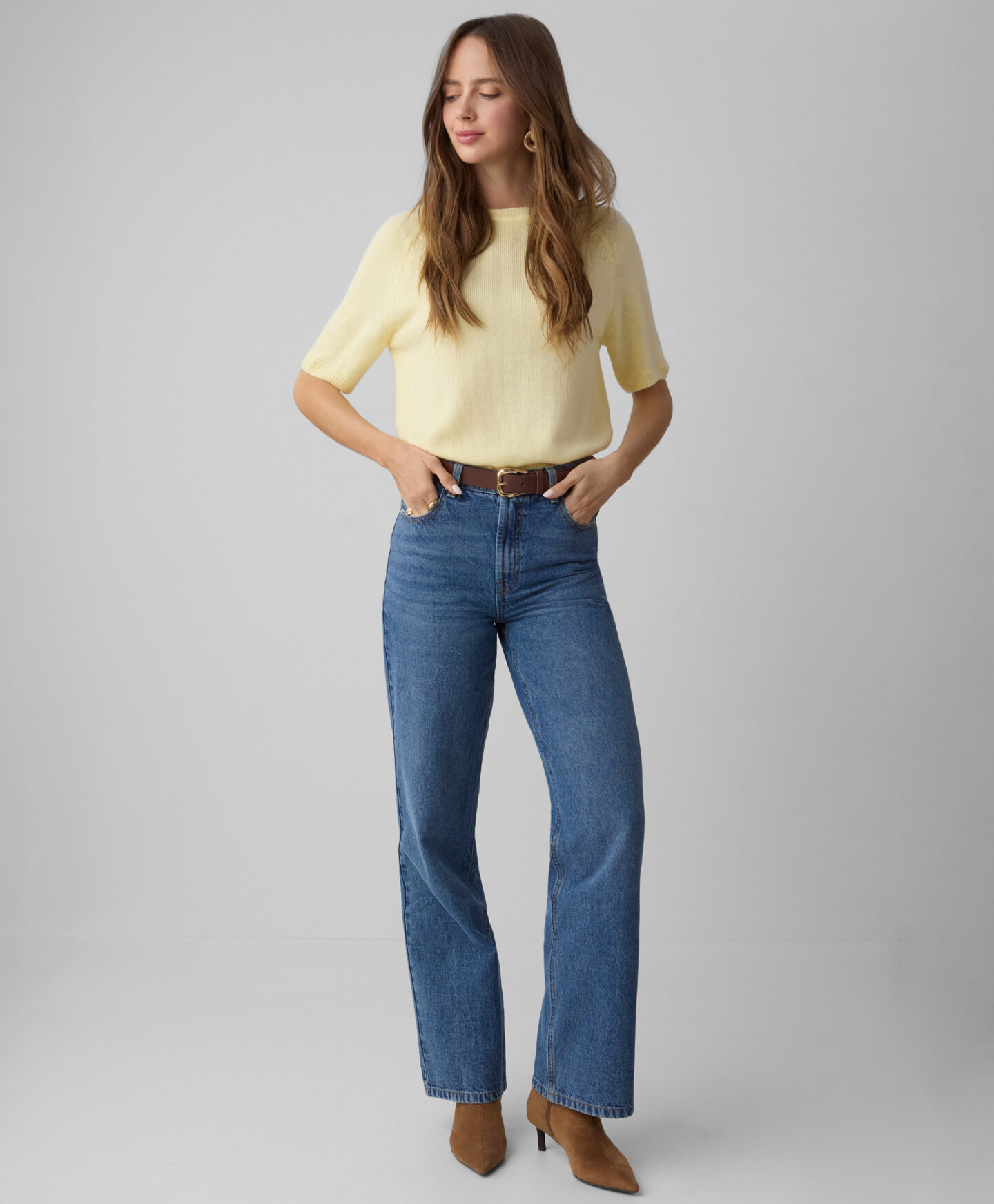 100% kokvilnas džinsi ar platām starām ir garderobes pamatelements jebkurā sezonā. Tie lieliski izskatās gan ar brīvu T-kreklu, gan elegantu, baltu kreklu. Ideāli piemēroti darbam birojā, randiņam vai izklaidei ar draugiem. Klasiskā, zilā krāsa piedāvā pilnīgu stila brīvību.