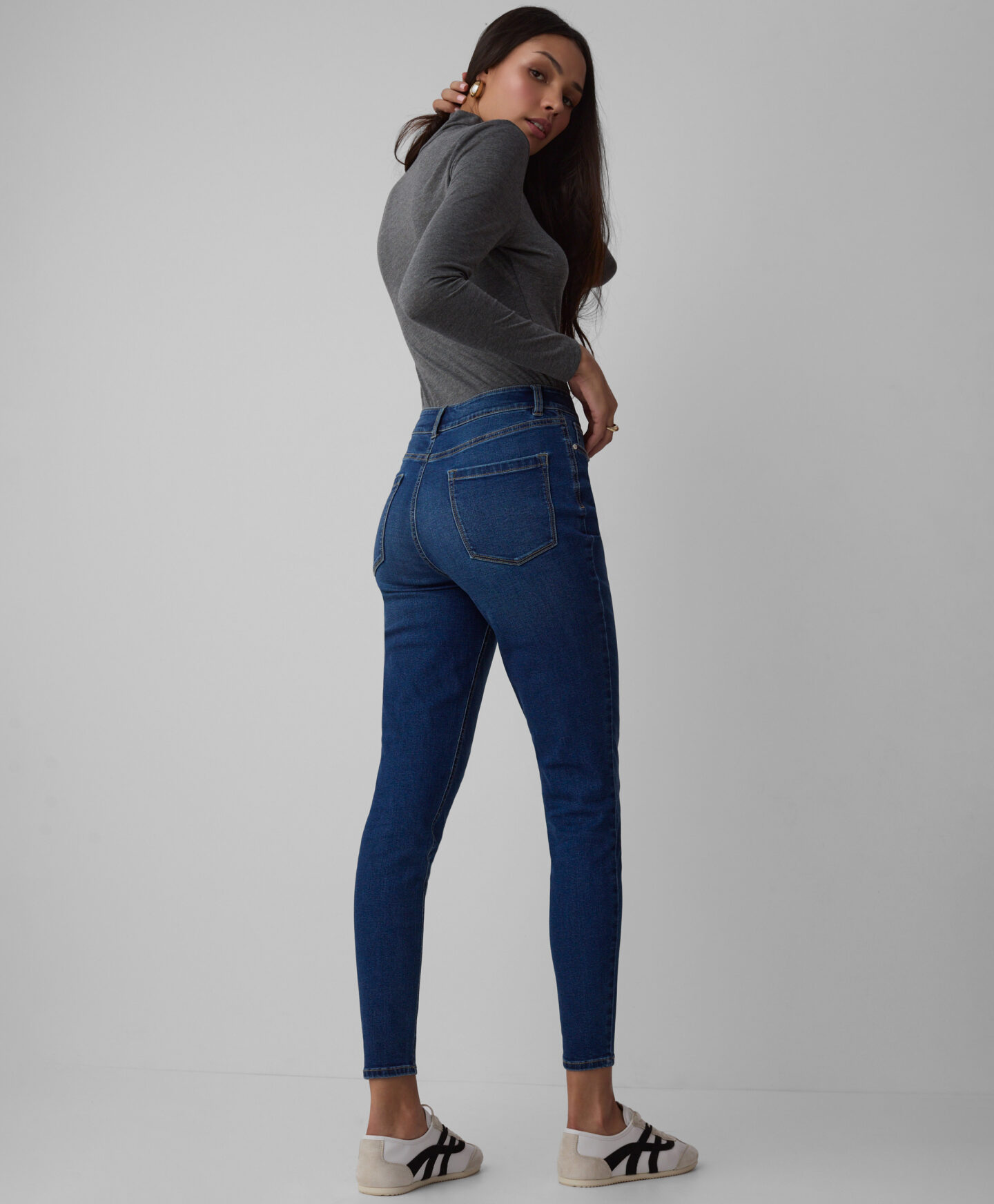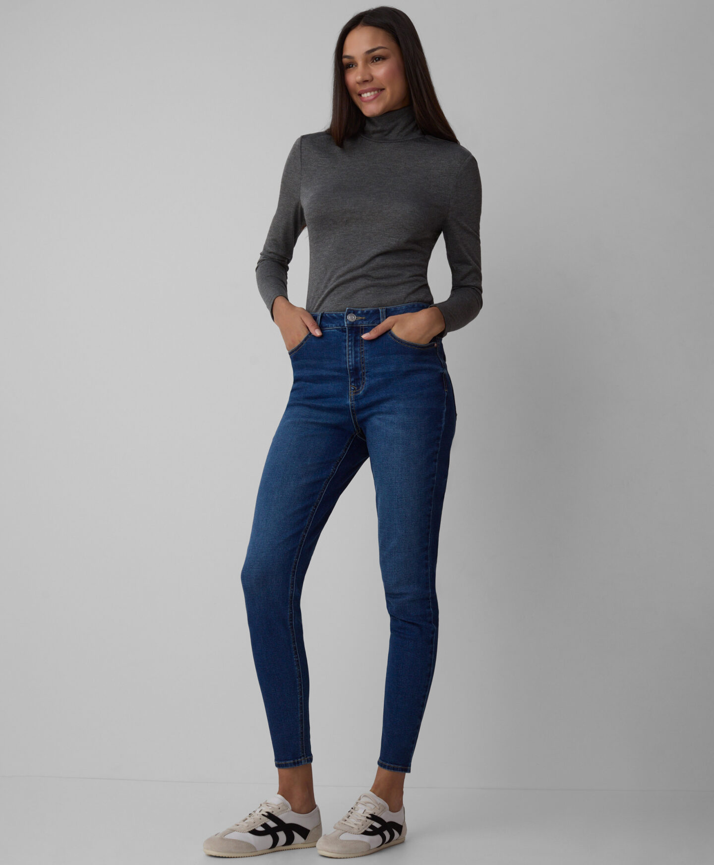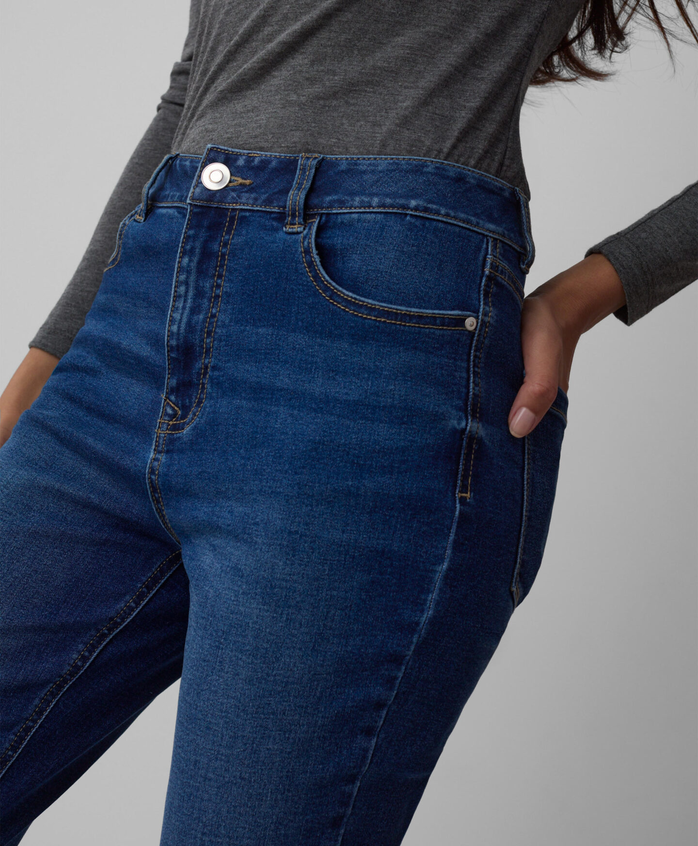 “Skinny” piegriezuma džinsi izceļ auguma priekšrocības. Tie ir cieši pieguļoši un skaisti akcentē siluetu. Izgatavoti no elastīga džinsa materiāla, tie nodrošina komfortu un kustību brīvību. Izturīgais materiāls garantē, ka džinsi saglabās formu pat pēc daudzkārtējas mazgāšanas.