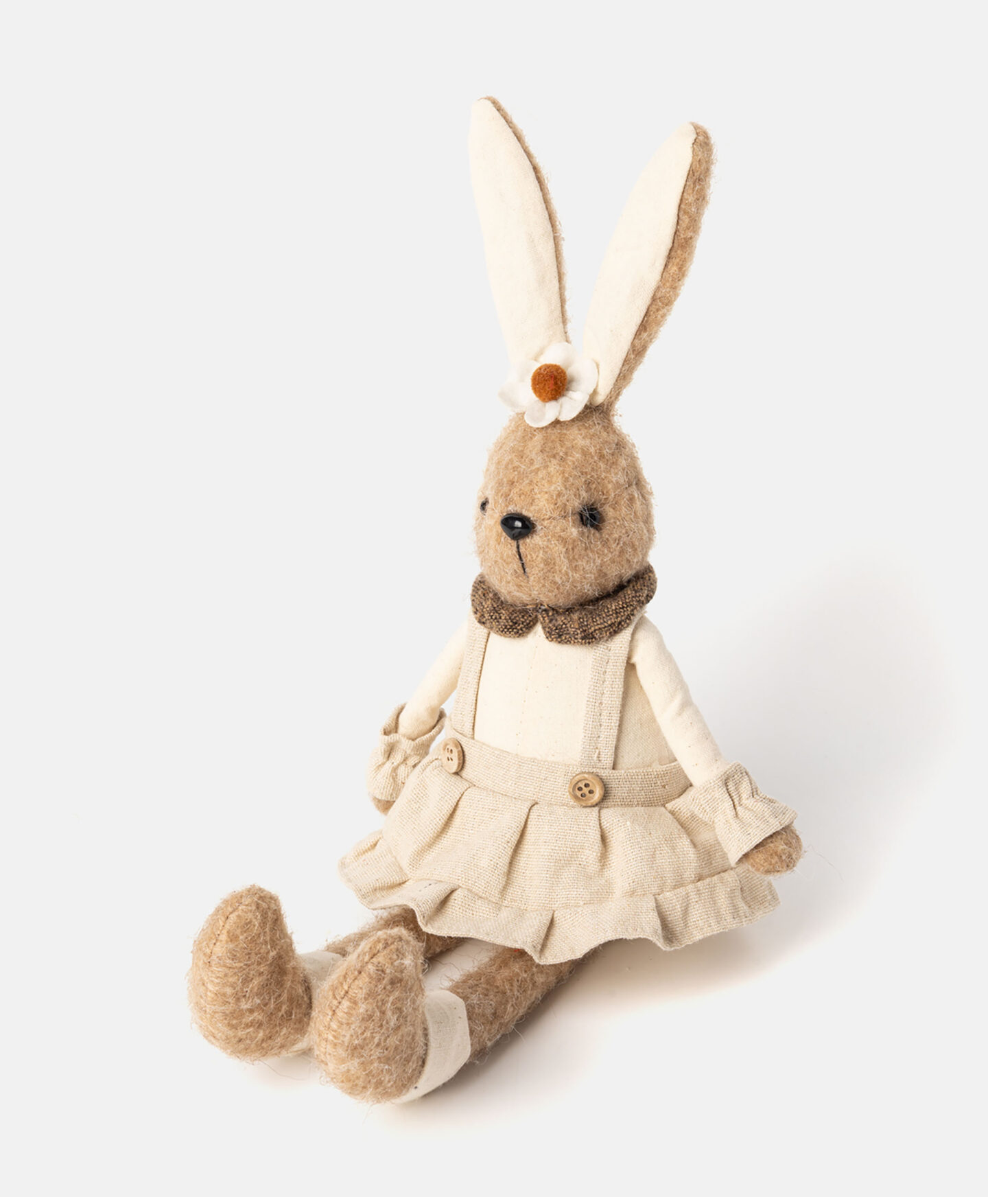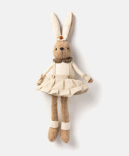 Šis sēdošs filca zaķis ir elegants dekors, ko var novietot uz galda, palodzes vai kamīna. Tas izskatīsies skaisti blakus vāzei ar pavasara zariņiem vai grieztajiem ziediem. Neitrālās krāsas ļauj zaķim perfekti papildināt jebkuru interjeru.