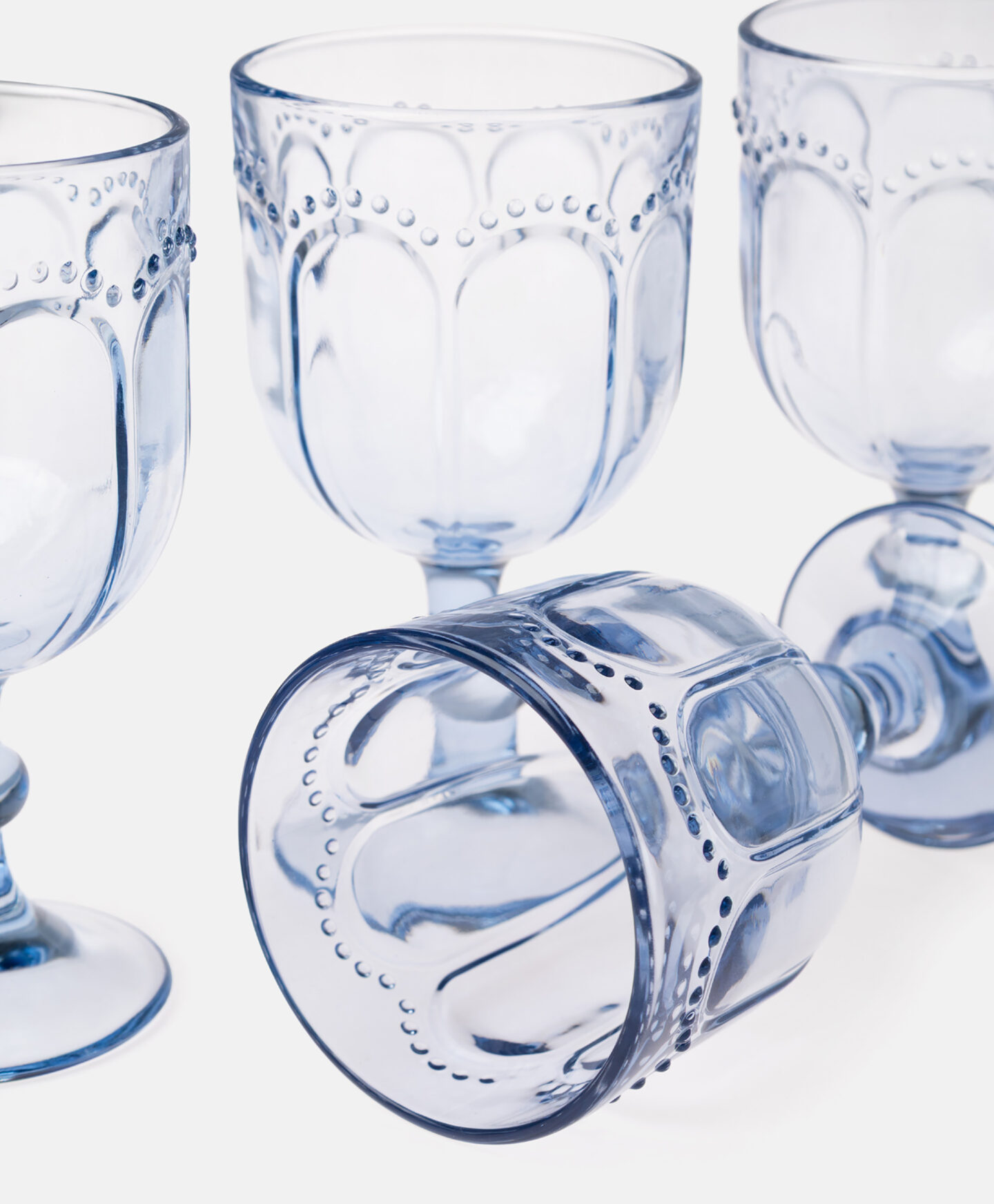 Šis 4 glāžu komplekts izcelsies virtuves plauktos. Stikls skaisti atstaro gaismu, radot interesantu vizuālo efektu un piešķirot eleganci jebkuram galda klājumam. Tas ir arī stingrs, izturīgs pret skrāpējumiem un nodrošina neitrālu garšu pasniegtajiem dzērieniem. Piedāvājumā ietilpst ideāli pieskaņota krūka un glāžu komplekts.
