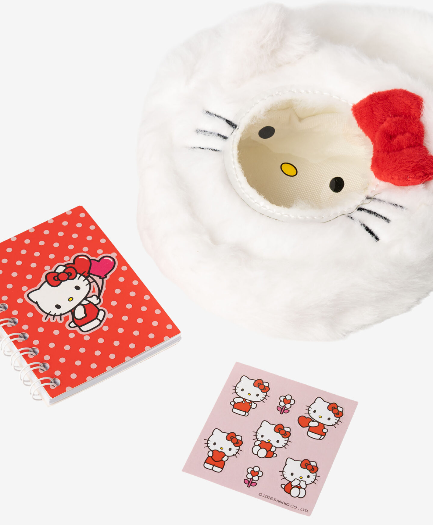HELLO KITTY komplektā ietilpst pūkains maciņš un uzlīmju klade. Šāda veida sīkrīks noteikti iepriecinās jebkuru šīs ikoniskās varones fanu. Tas ir mīlīgs, kompakts un gatavs kopīgiem piedzīvojumiem! Maciņam ar rokturi ir raksturīgā, sarkanā bante, kas ir HELLO KITTY preču zīme.