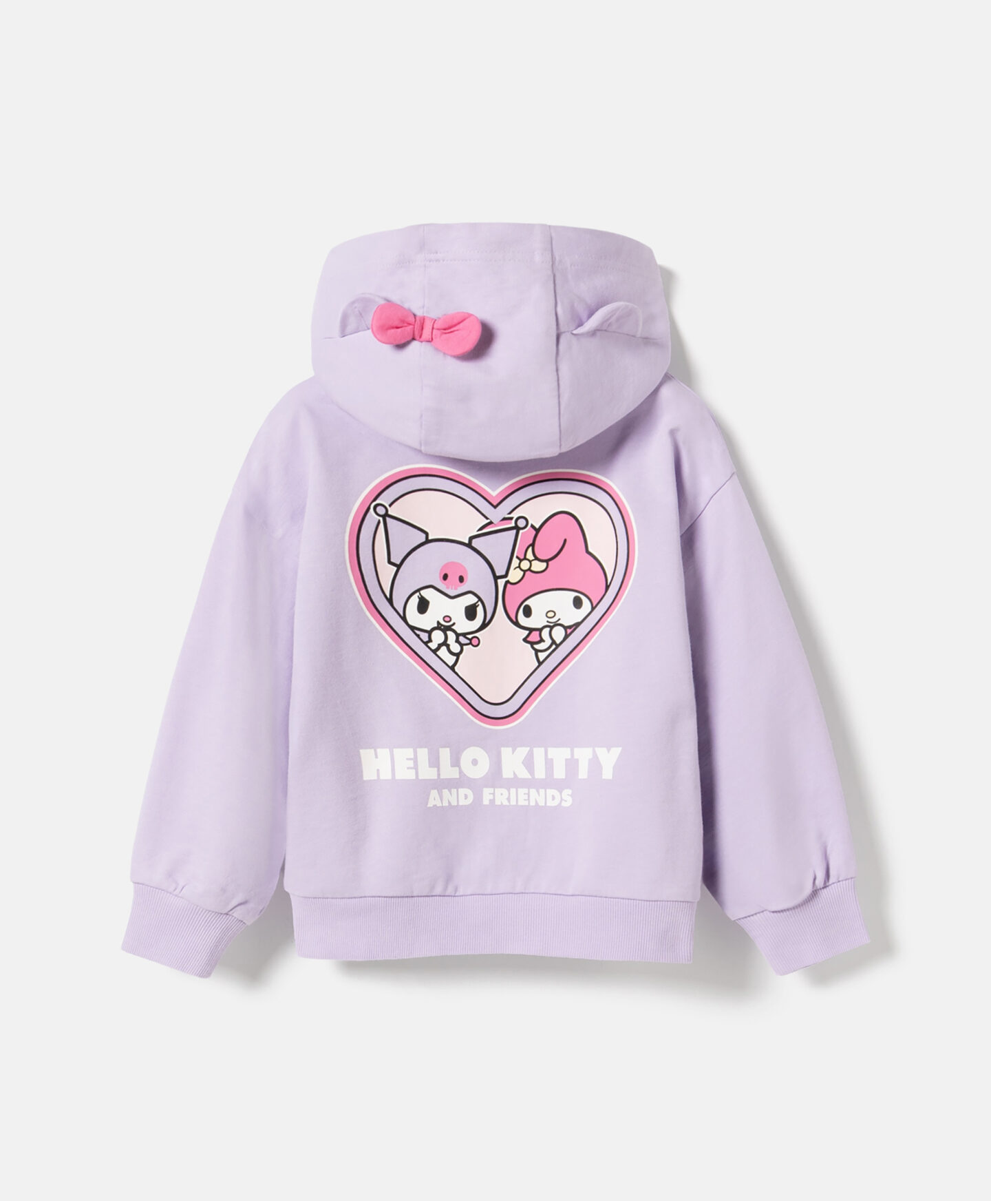 Džemperis HELLO KITTY UN DRAUGI izceļas ar apdruku aizmugurē un 3D bantīti uz kapuces. Ērtā rāvējslēdzēja aizdare ļauj bērniem viegli apģērbties pašiem. Šo sporta kreklu var saderēt ar džinsiem, legingiem vai svārkiem. Tas ir neticami daudzpusīgs un viegli veidojams.