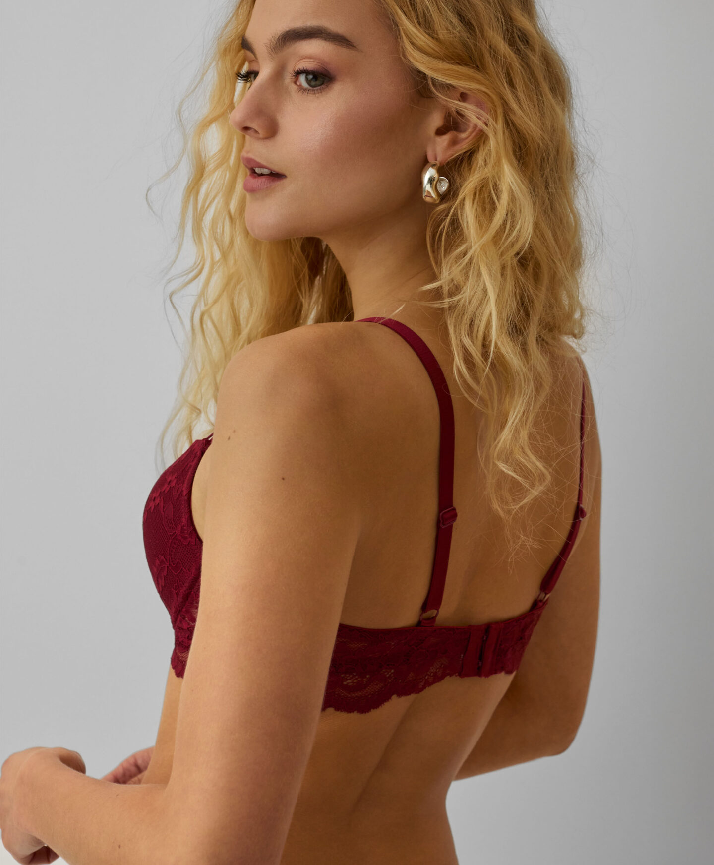 Šis “push-up” krūšturis piedāvā izcilu krūšu pacelšanas efektu, padarot jebkuru apģērbu apburošu. Bordo rožu raksts piešķir tam romantisku pieskārienu, padarot krūšturi par perfektu ideju jutekliskai dāvanai. Izgatavots no mīksta, patīkama materiāla, krūšturis nodrošina komfortu visas dienas garumā. Kolekcijā pieejamas arī pieskaņotas biksītes.