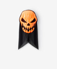 Ķirbju Maska ir klasiska Halovīna izvēle, kas piesaista uzmanību ar savu tumšo dizainu. Draudīgas acis, asi zobi un spilgti oranža krāsa ar spīdumu rada patiesi biedējošu efektu. Ideāli piemērots tiem, kas vēlas savam tērpam piešķirt šausmu pieskārienu. Pieejami arī citi dizaini.