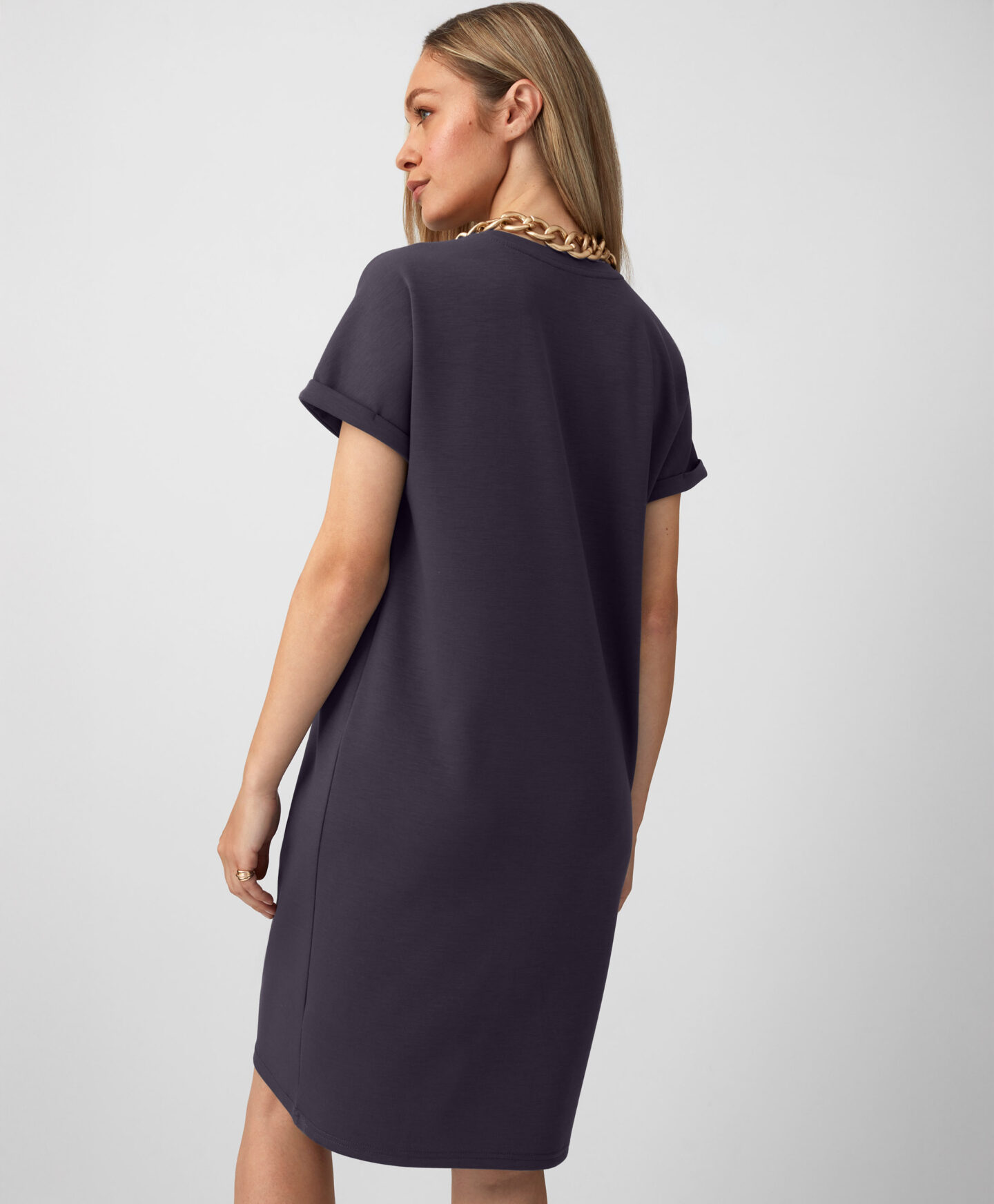 Melna kleita ar īsām piedurknēm ir klasiska izvēle, kas piemērota jebkuram notikumam. Tās minimālistiskais dizains un universālais tonis padara to iederīgu gan ikdienā, gan elegantākā pasākumā. Ērtais piegriezums nodrošina valkāšanas komfortu visas dienas garumā.