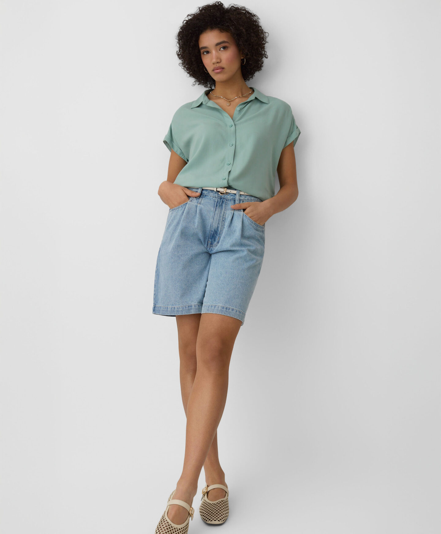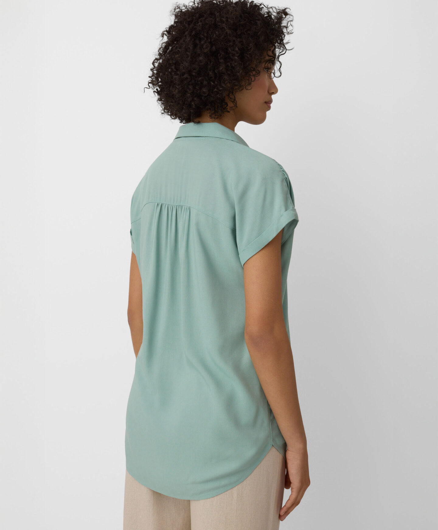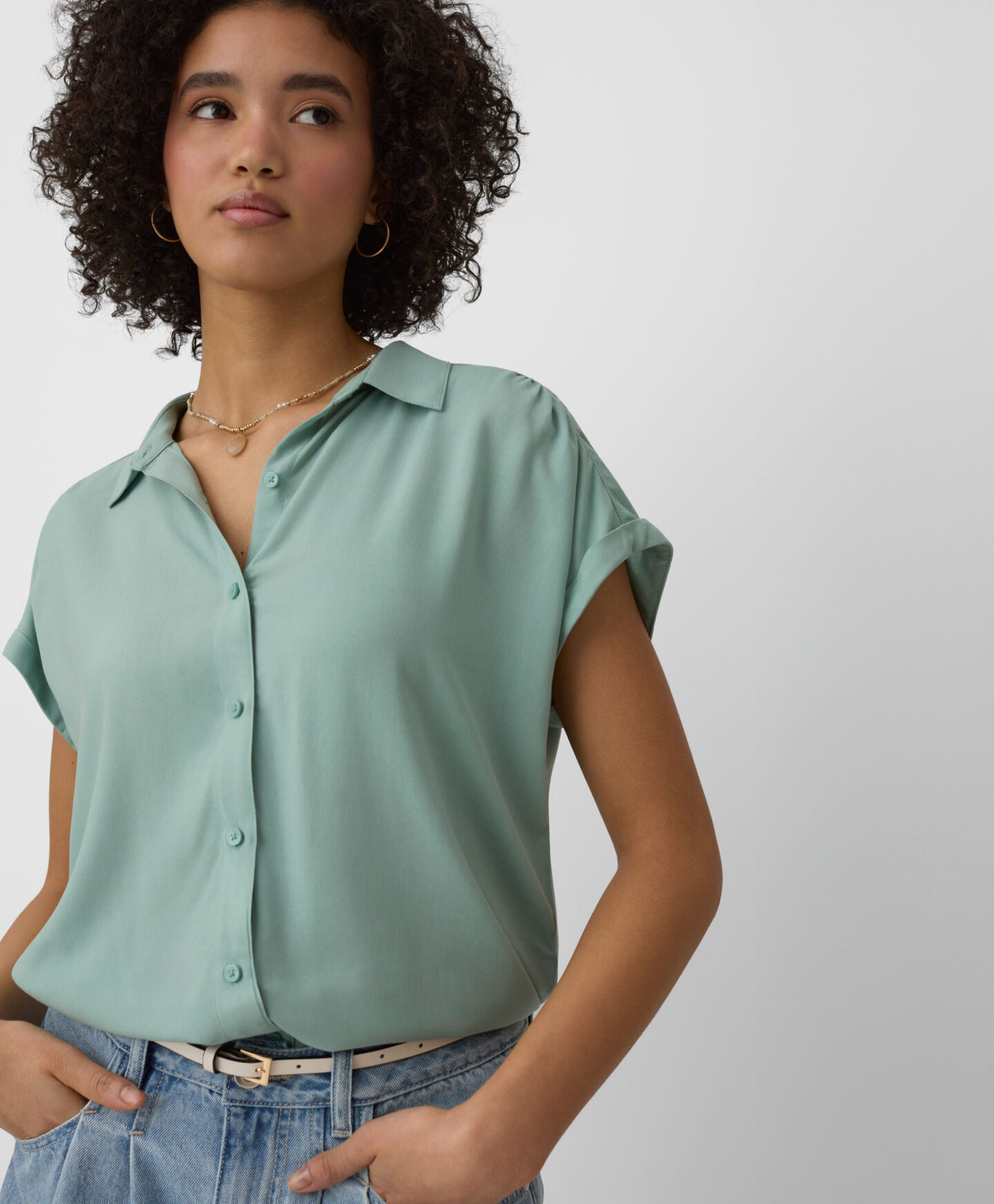 Koszula damska 100% wiskozy ma krótki rękaw, który idealnie sprawdzi się w ciepłe dni. Jest zwiewna, lekka i pozwala skórze oddychać. Miękki materiał miło otuli Cię, oferując komfort przez cały dzień noszenia. Koszula świetnie będzie prezentować się z szortami, ulubionymi jeansami czy bardziej eleganckimi spodniami.