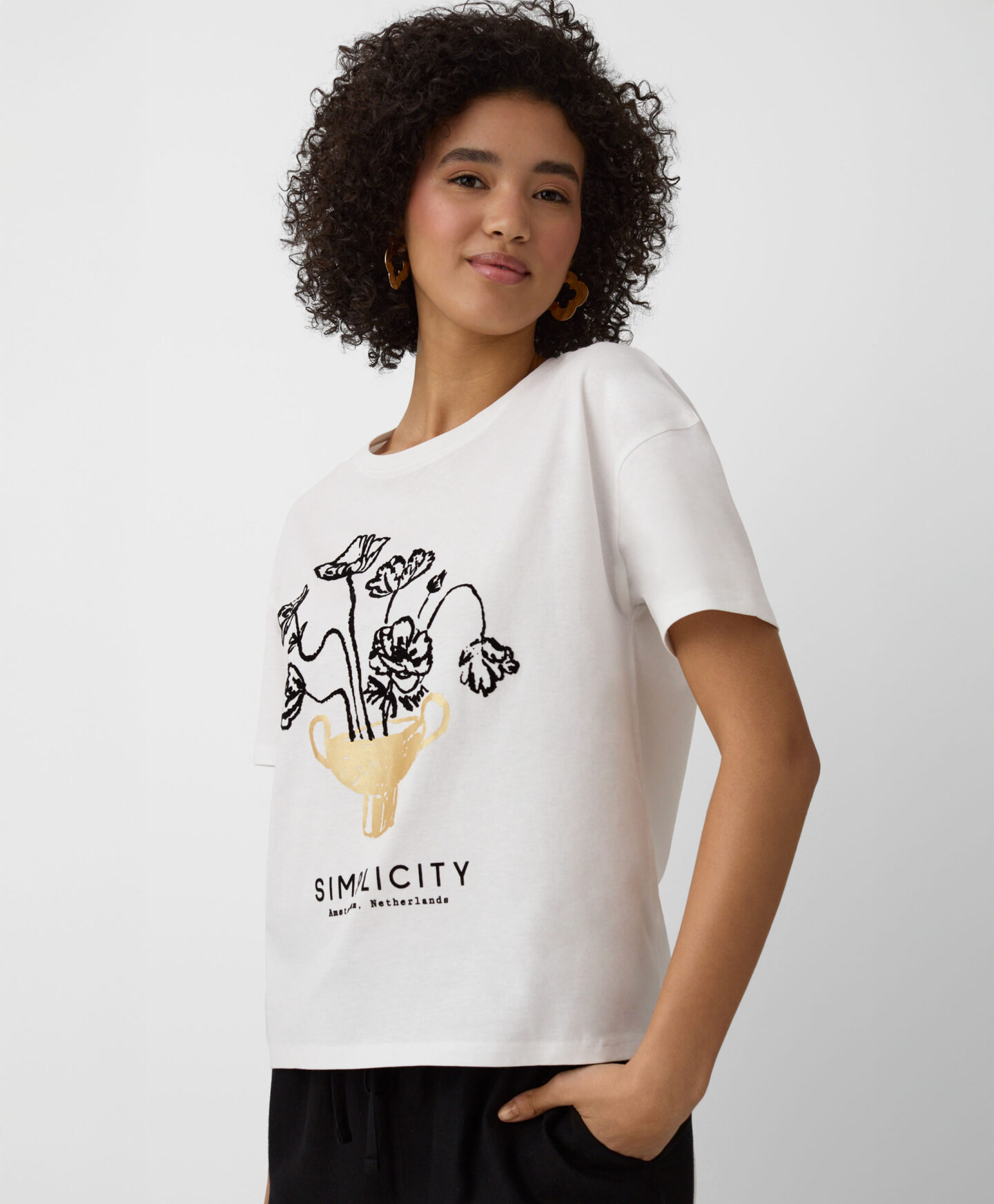 Koszulka damska 100% bawełny jest przewiewna, lekka i miło otula skórę. Prosta grafika na froncie przedstawiająca kwiat podbije serce każdej miłośniczki florystycznych akcentów. Koszulka będzie się świetnie prezentować w połączeniu z ulubionymi jeansami, spodniami sportowymi czy eleganckimi cygaretkami.