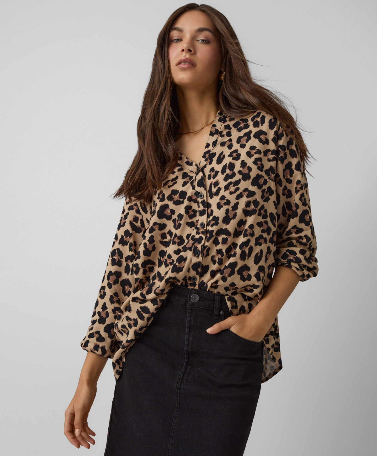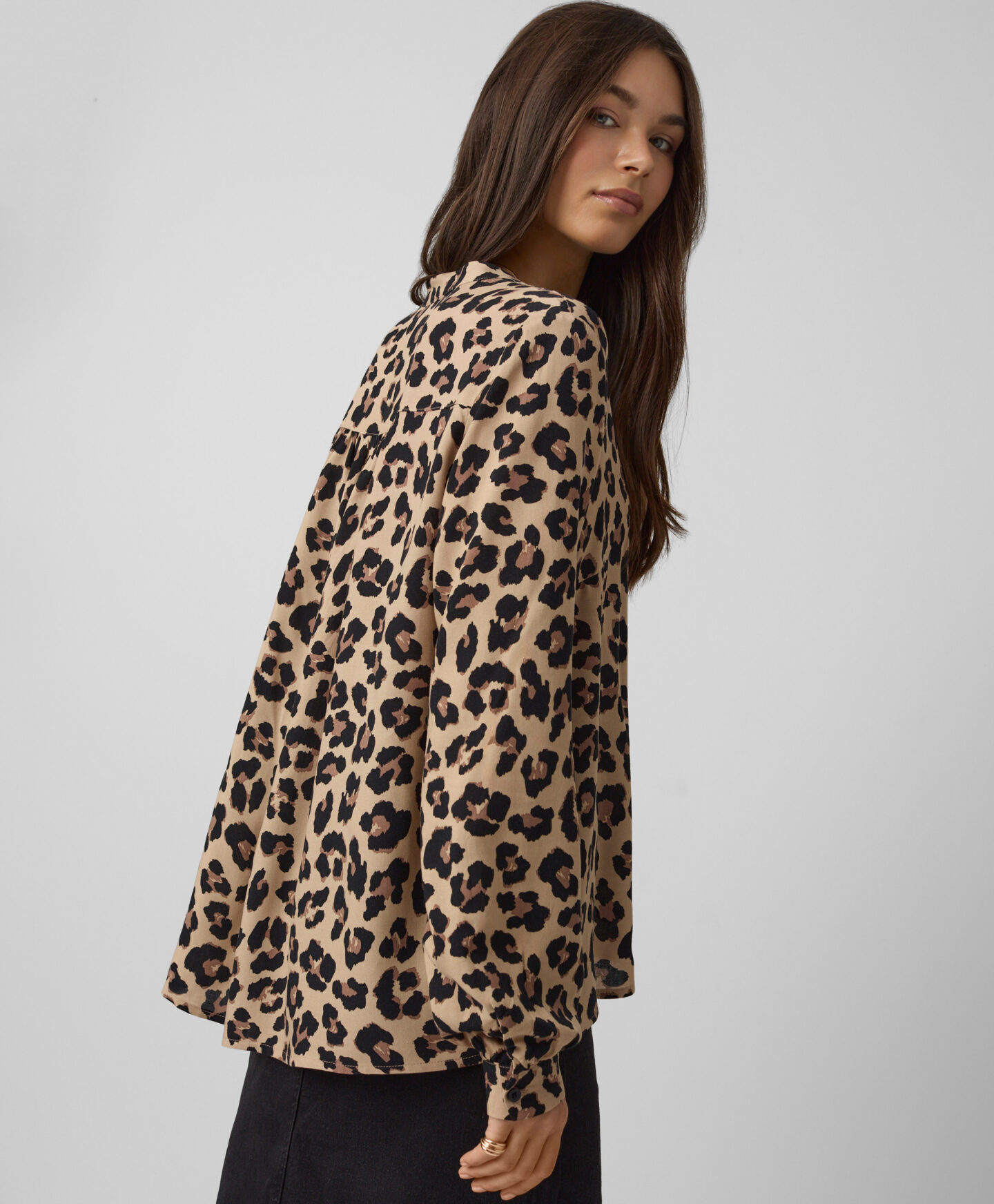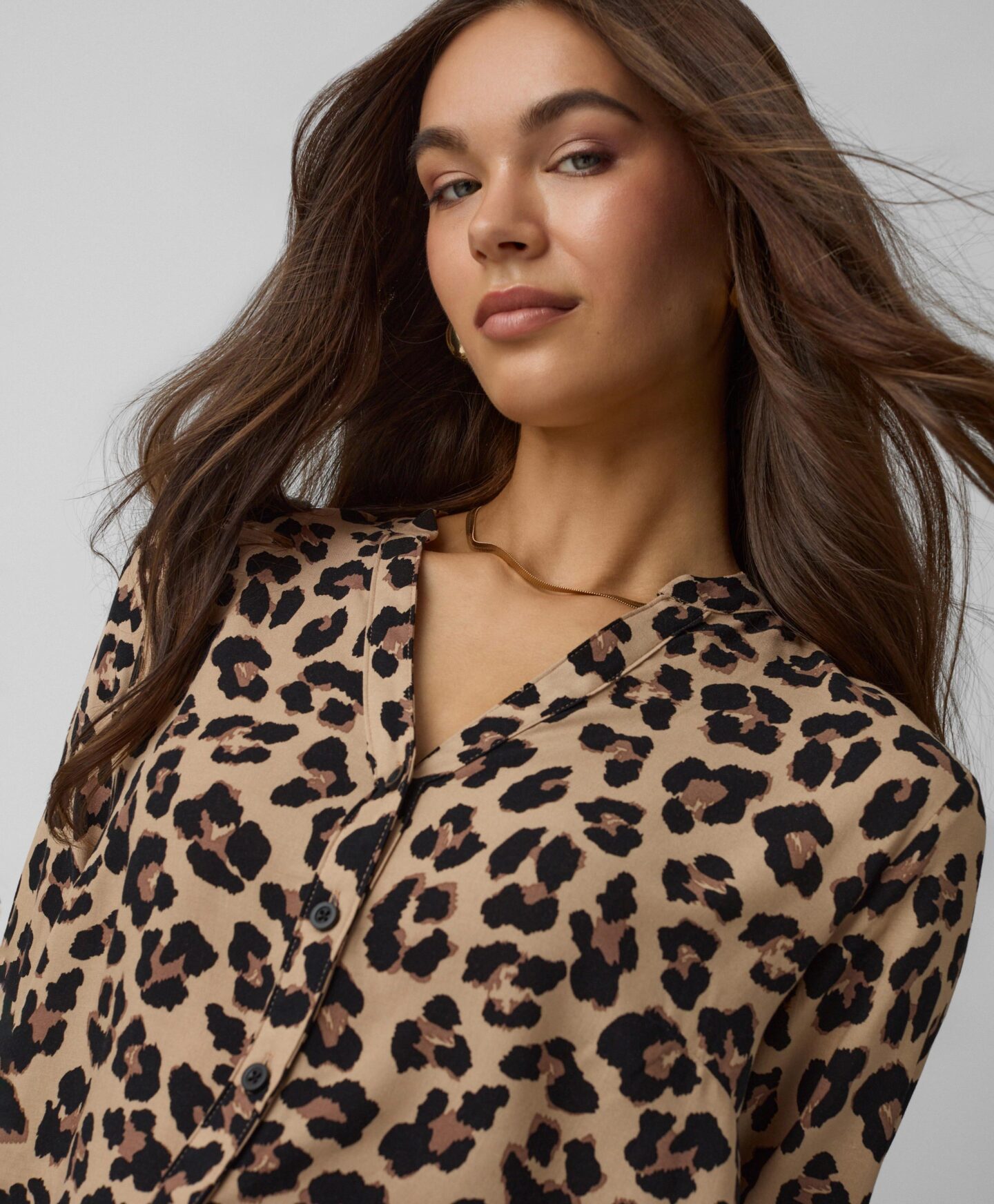 Rakstainais sieviešu krekls, kas izgatavots no 100% viskozes, būs stilīgs akcents garderobē. Tas ir viegls, gaisīgs un elpojošs. Ideāli piemērots, lai to vilktu zem žaketes vai siltāka džempera. Plankumainais raksts to atšķir no citiem krekliem.