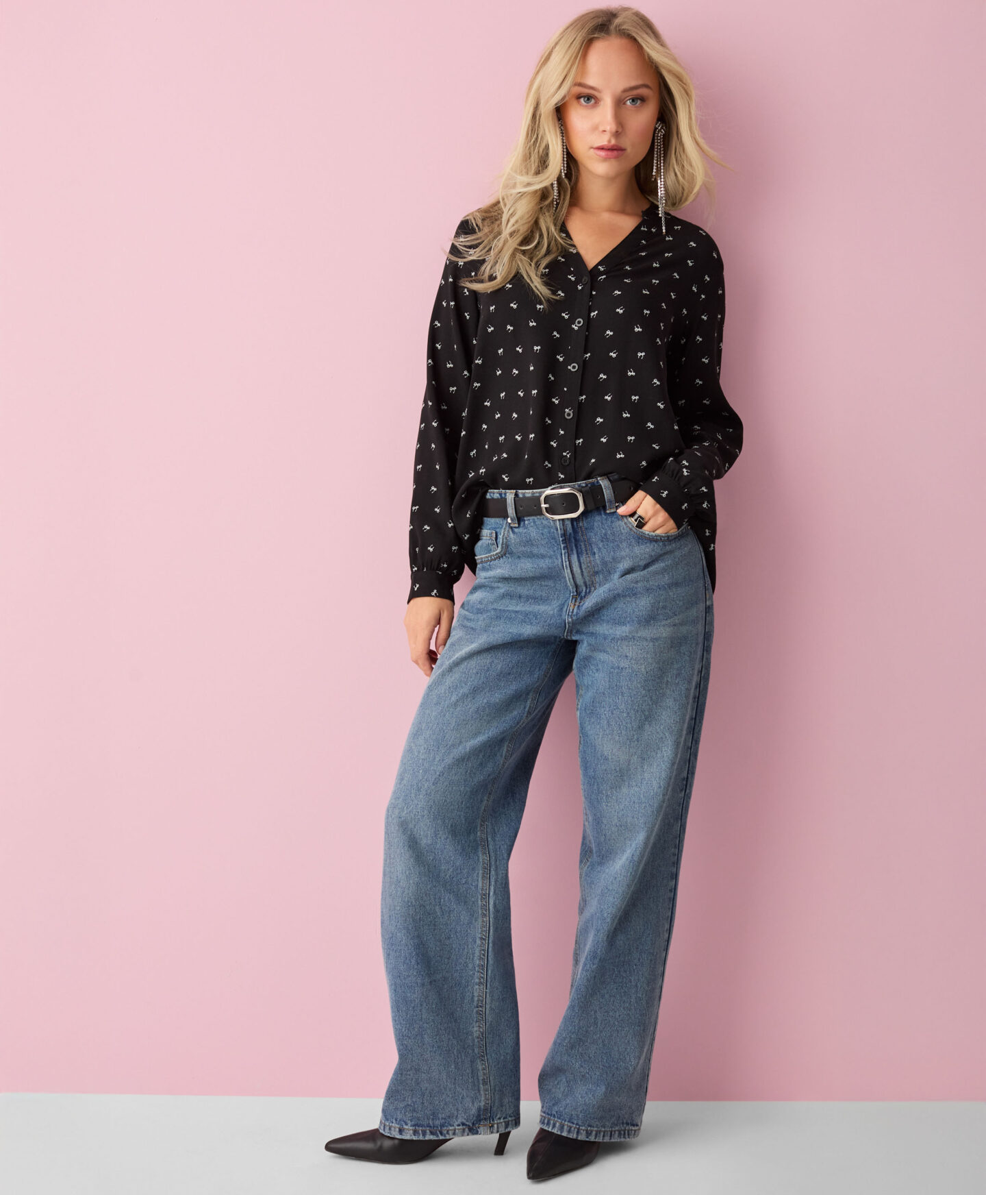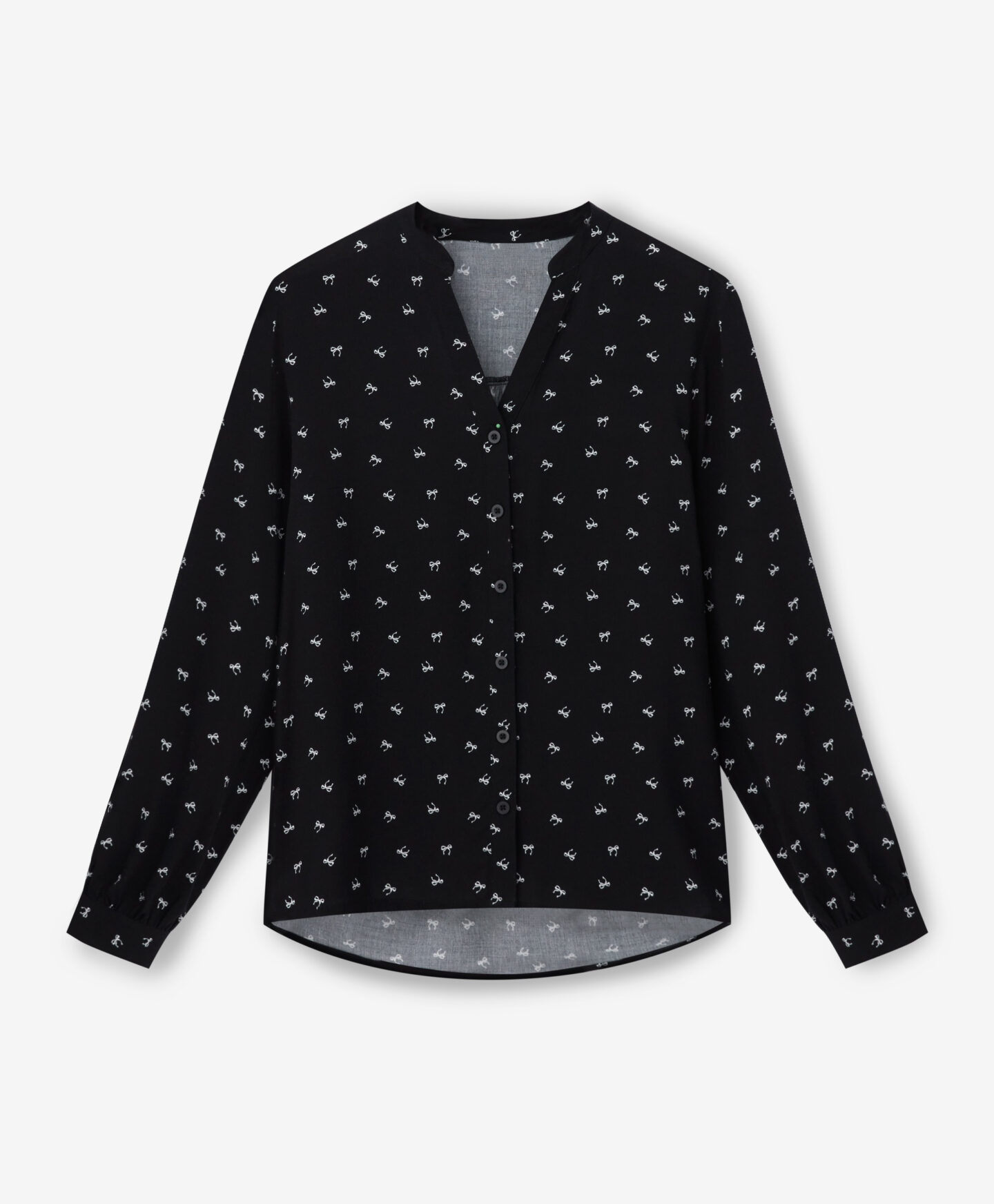 Krekls, kas izgatavots no 100% viskozes, ar garām piedurknēm, ir dekorēts ar smalku bantīšu rakstu. Tas ir viegls, gaisīgs un romantisks. Ideāli piemērots ne tikai ikdienas valkāšanai, bet arī īpašiem gadījumiem. Elpojošā viskoze padara to par ideālu izvēli, lai vilktu zem žaketes, džempera vai jakas.