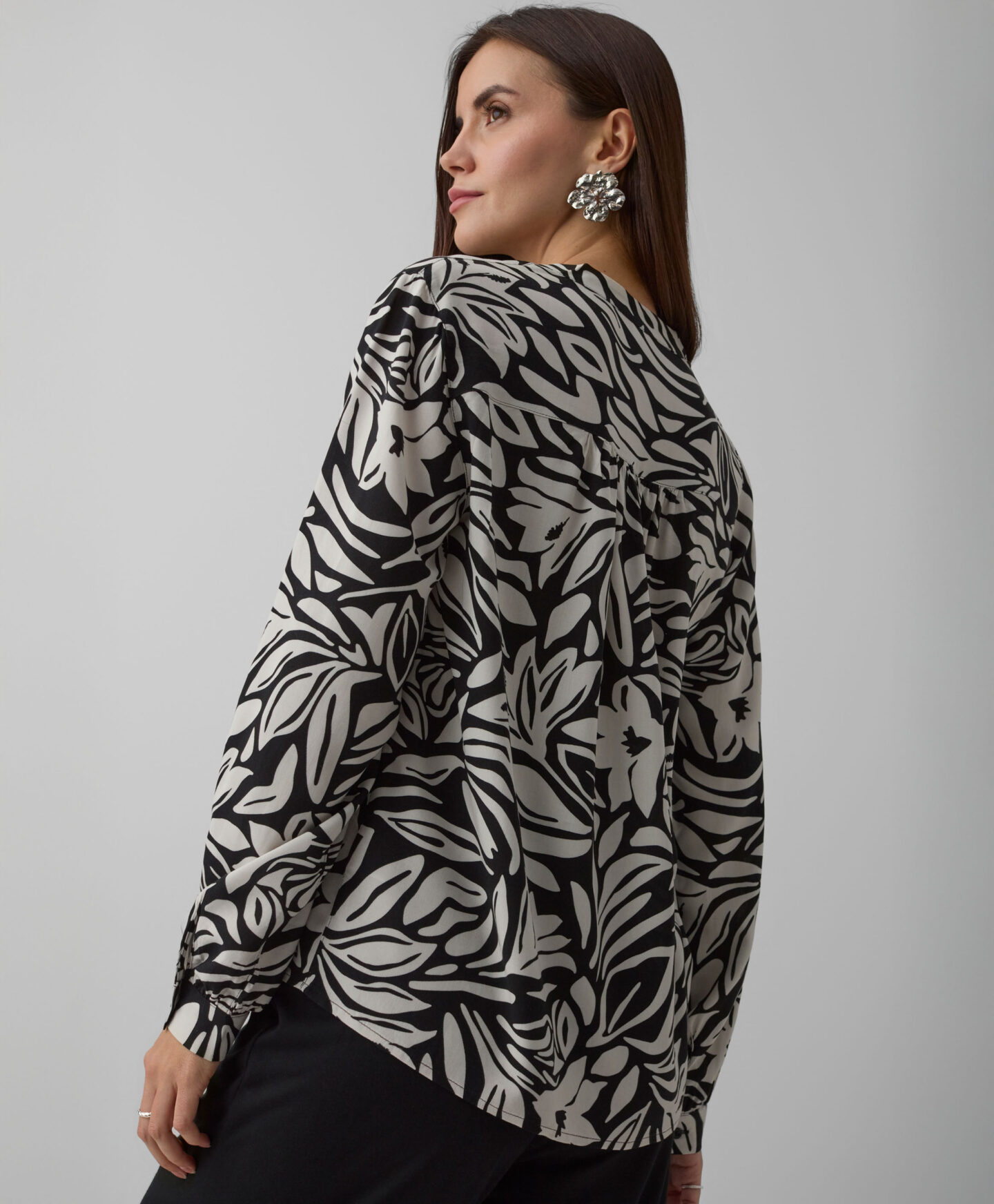 Krekls, kas izgatavots no 100% viskozes, ir elegances un komforta apvienojums. Tas lieliski izskatās kopā ar rotaslietām un dažādiem aksesuāriem. Ziedu raksts piešķir raksturu un padara šo kreklu ideāli kombinējamu ar vienkrāsainām biksēm. To var vilkt gan ar džinsiem, gan ar elegantiem apģērba gabaliem, piemēram, “chino” vai “cigarette” biksēm.