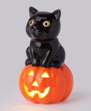 Kaķis, kas sēž uz ķirbja LED, ir burvīgs dekors, kas lieliski iederēsies Halovīnā. Ķirbis izstaro maigu gaismu, kas rada mājīgu un maģisku atmosfēru. Tas ir ideāli piemērots interjeru, palodžu vai kamīnu dekorēšanai.