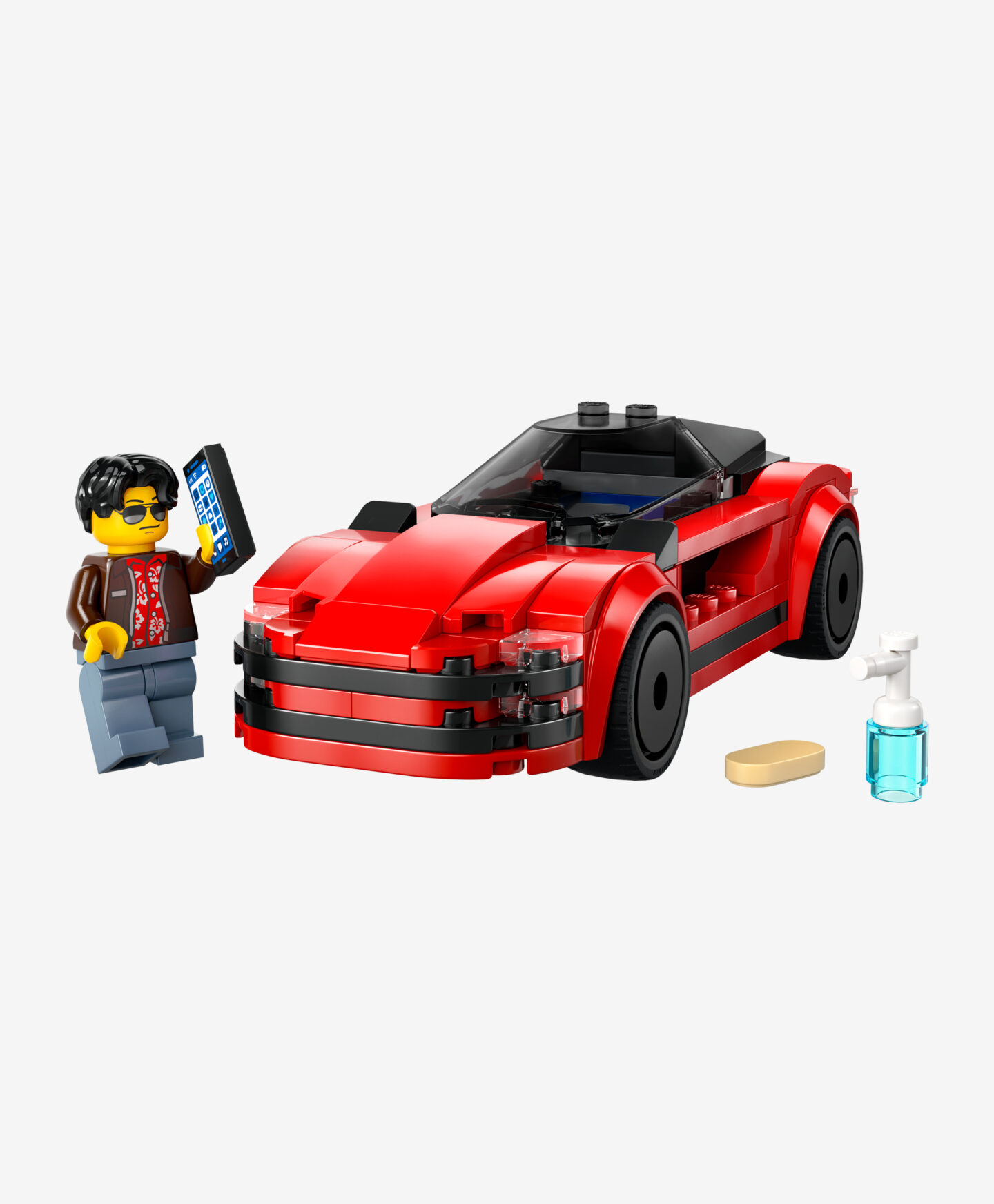 LEGO® City Red Sports Car ļauj uzbūvēt transportlīdzekli ar dinamisku izskatu un modernu stilu. Sportiskās detaļas padara modeli ideāli piemērotu sacīkšu spēlēm.
