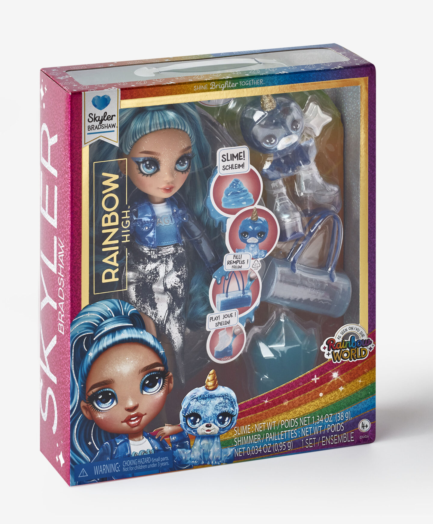 Lelle Rainbow High Skyler Bradshaw lelle žilbina ar košām krāsām un aksesuāriem, kas uzlabo rotaļu laiku. Viņas mirdzošā kleita ar asimetrisku rakstu lieliski papildina viņas garos tirkīzzilos matus. Komplektā ietilpst rokassoma, ķemme, statīvs un aksesuāri, kas ļauj bērniem attīstīt iztēli un radīt dažādus scenārijus. Šī lelle kļūst par neatņemamu radošās rotaļas sastāvdaļu.