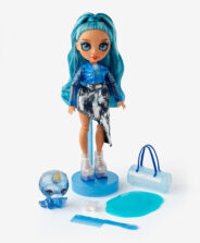 Lelle Rainbow High Skyler Bradshaw lelle žilbina ar košām krāsām un aksesuāriem, kas uzlabo rotaļu laiku. Viņas mirdzošā kleita ar asimetrisku rakstu lieliski papildina viņas garos tirkīzzilos matus. Komplektā ietilpst rokassoma, ķemme, statīvs un aksesuāri, kas ļauj bērniem attīstīt iztēli un radīt dažādus scenārijus. Šī lelle kļūst par neatņemamu radošās rotaļas sastāvdaļu.