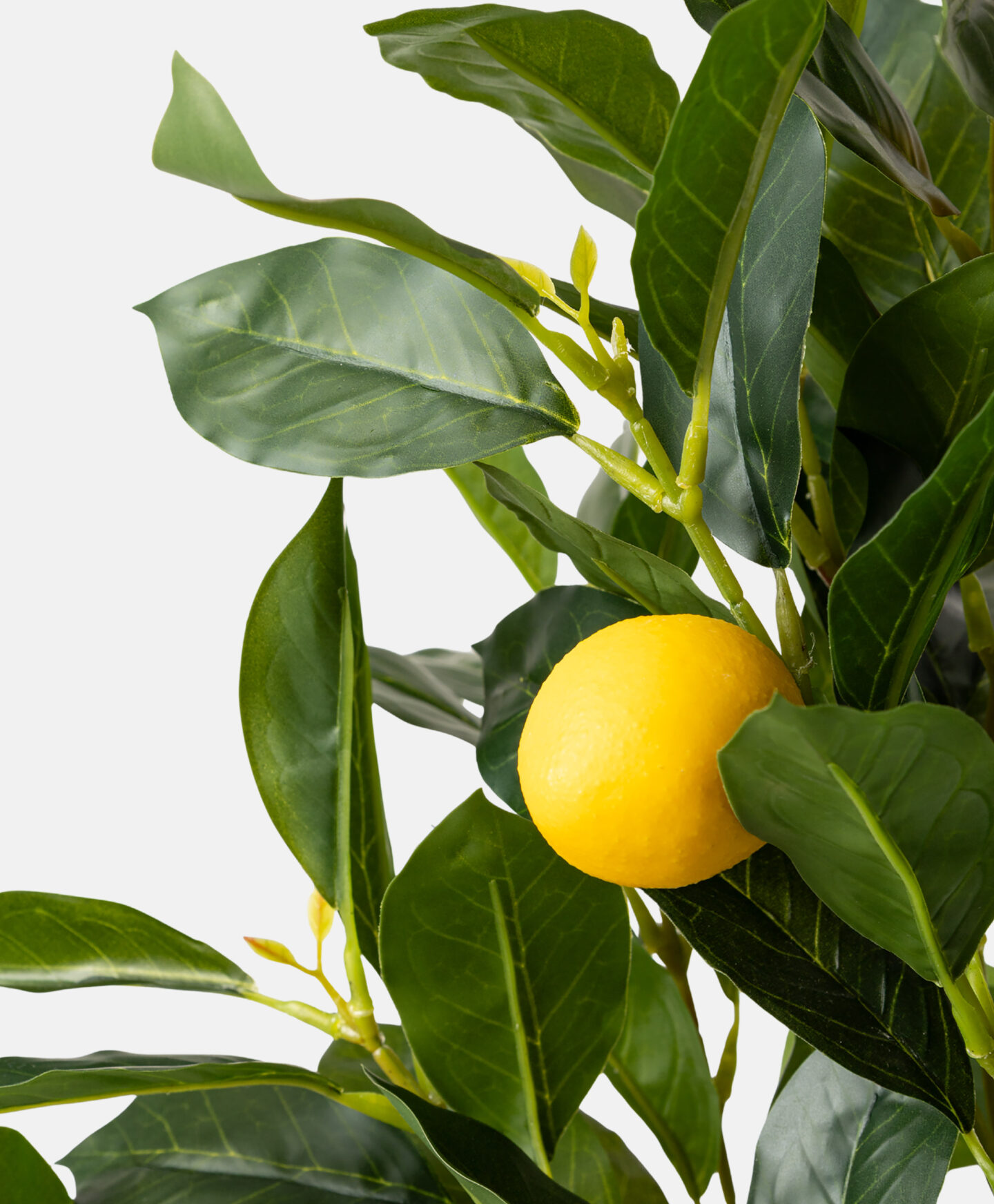 Mākslīgais citronkoks visu gadu atgādina par vasaru. Tas lieliski atveido dabiskā citronkoka izskatu ar blīvu lapotni, zaļām lapām un reālistiskiem augļiem. Koks neprasa ne laistīšanu, ne saules gaismu, ne regulāru kopšanu, tāpēc tas ir ideāls risinājums aizņemtiem dārzniekiem vai tiem, kam nav pieredzes dārzkopībā. Koka augstums un izmērs ļauj to novietot dzīvojamā istabā vai terasē, piešķirot jebkurai telpai svaigu, dabisku šarmu.