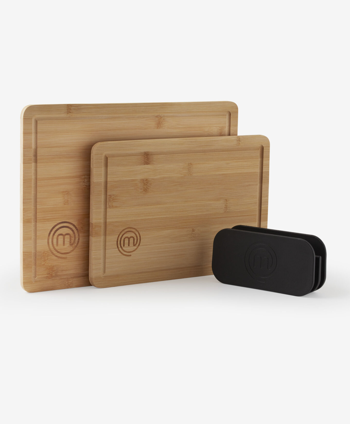 MASTERCHEF virtuves dēlīšu komplekts ar statīvu ir ideāla izvēle tiem, kas novērtē funkcionalitāti un estētiku virtuvē. Dēlīši ir izgatavoti no bambusa, tādēļ tie ir ne tikai izturīgi, bet arī higiēniski. Statīvs nodrošina ērtu uzglabāšanu, ietaupot vietu uz galda. Komplekts ir pieejams dažādos izmēros un ir ideāli piemērots dārzeņu, gaļas un maizes griešanai.