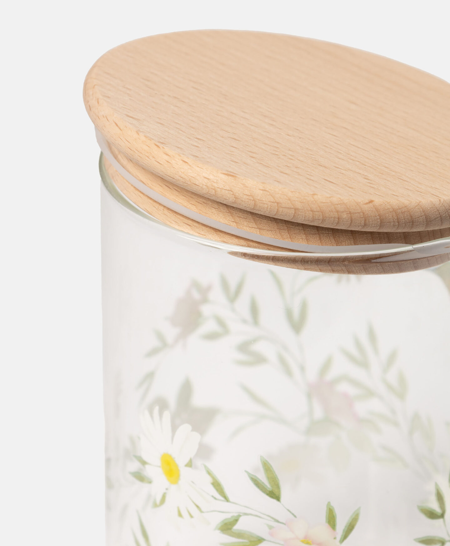 Mazā burciņa ar dižskābarža vāku ir estētisks papildinājums virtuvei. Tā ir izgatavota no izturīga borosilikāta stikla, ir viegli tīrāma un izturīga, paredzēta ikdienas lietošanai. Burciņa lieliski der garšvielu, kafijas pupiņu vai konfekšu uzglabāšanai. Hermētiskais vāks aizsargā saturu no mitruma un piesārņojuma, turklāt burciņa izskatās skaisti uz virtuves galda. Pavasarīgais motīvs uz sieniņām piešķir interjeram vieglumu un svaigumu.