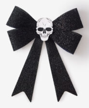 Melna bante ar galvaskausu ir oriģināls Halovīna dekors. Tas apvieno tumšu atmosfēru ar eleganci. Izgatavots no spīdīga materiāla, tas skaisti mirdzēs sveču gaismā. Tas lieliski izskatīsies kā durvju, aizkaru vai galda dekors. Pieejamas arī citas krāsas.